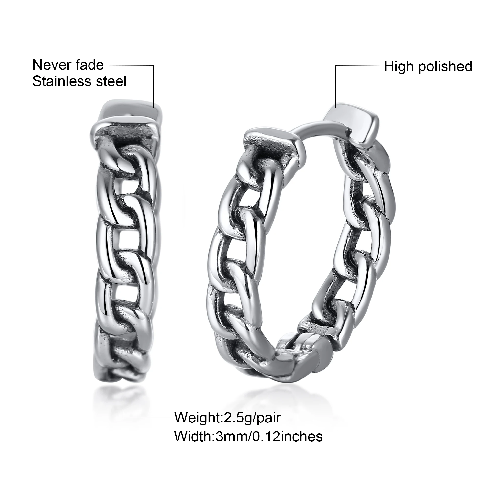 Daiiibabyyy Hoop Earring Mens, Viking Coiled Rope Huggie Hoop Earing ,Stainless Steel Hoops Earrings,for Men Jewelry