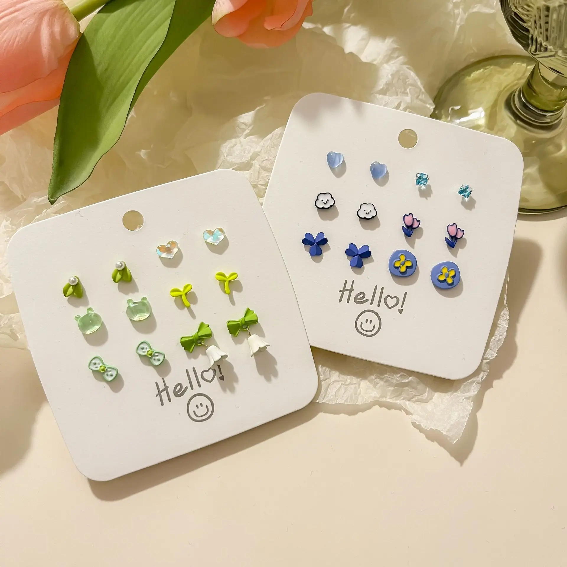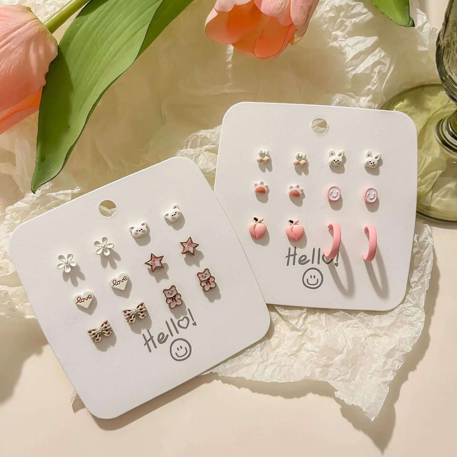 DAIIIBABYYY - Hot Selling Cute Flower Heart Cartoon Animal Stud Earrings Set for Women Korean Fashion Sweet Pink Peach Earring Jewelry