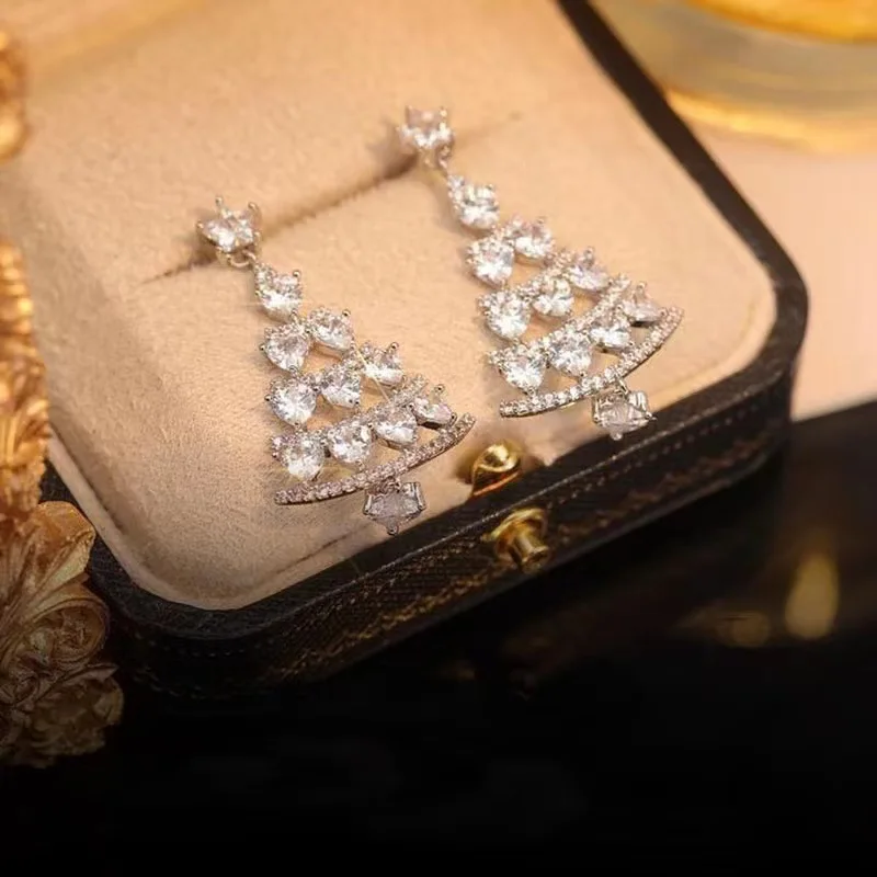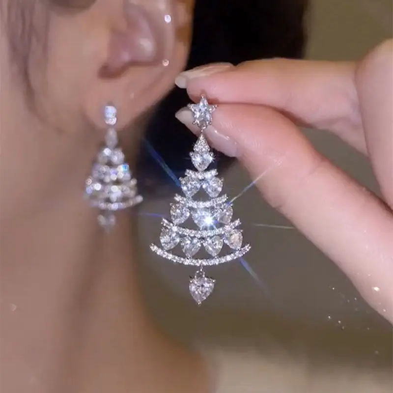 DAIIIBABYYY - Hot Selling Shiny Rhinestone Hollow Christmas Tree Earrings Women's Fashion Luxury Versatile Charm Earrings Holidays Gift 2024