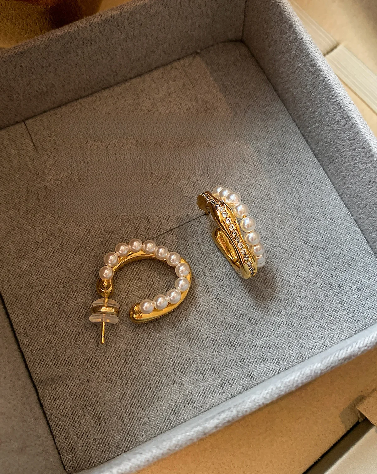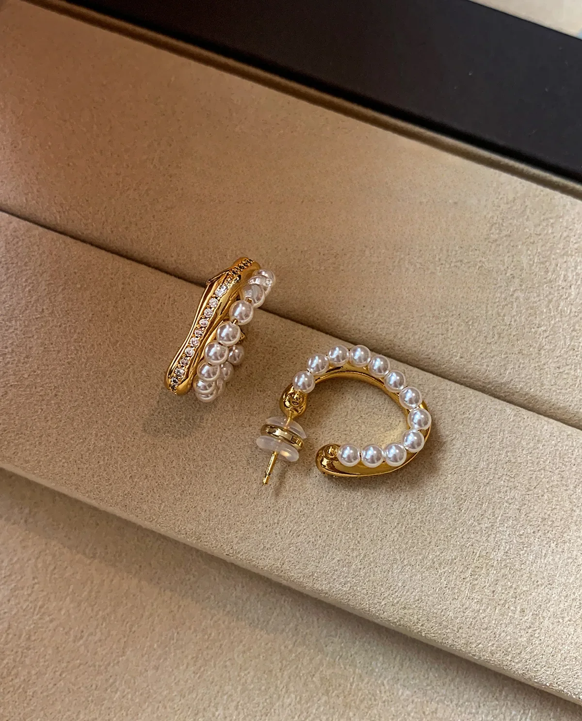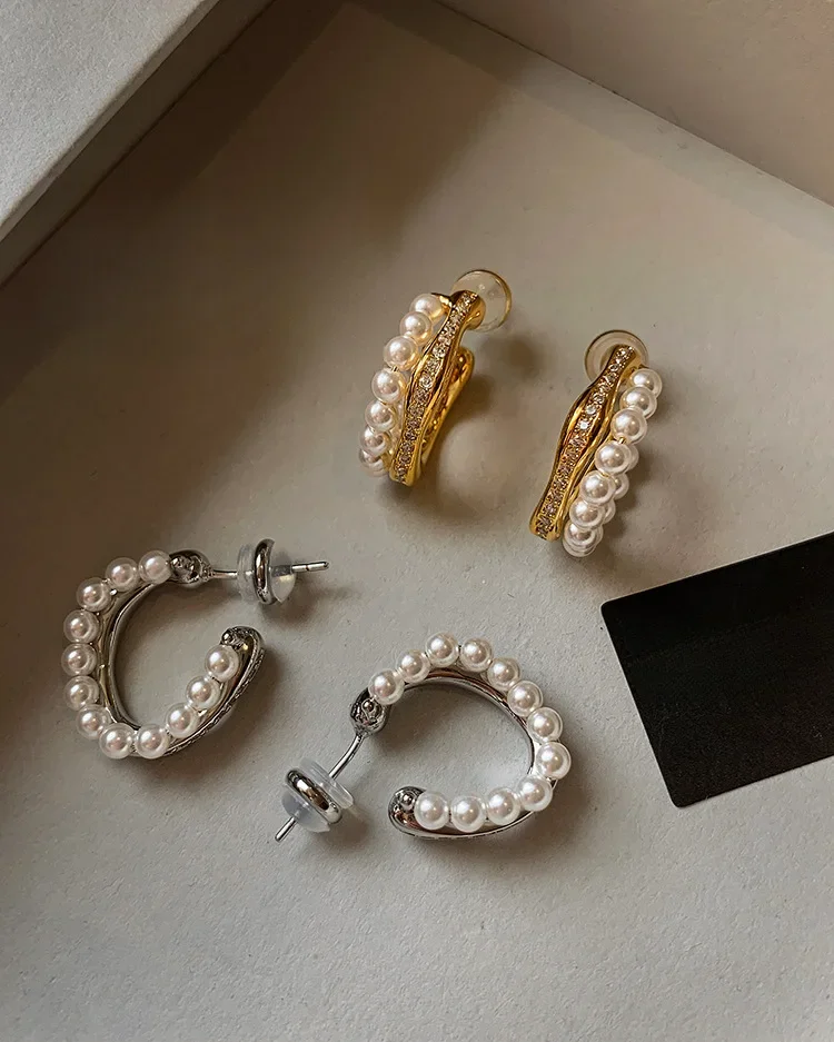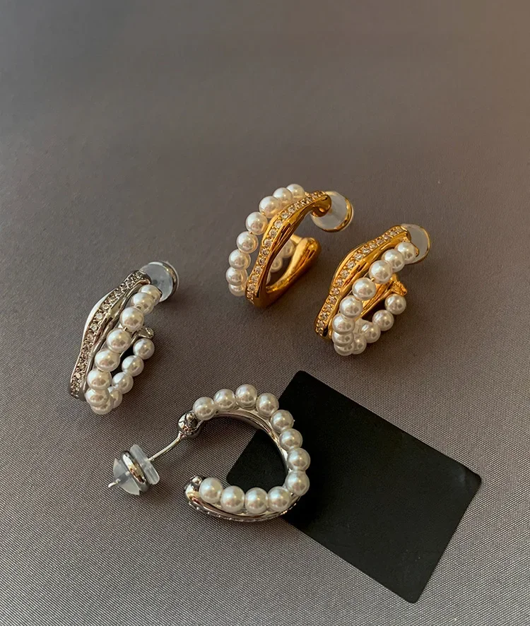 Daiiibabyyy Inlaid Rhinestone Pearl Earrings for Women European and American Retro Elegant Fashion Stud Earring Luxury High-end Jewelry