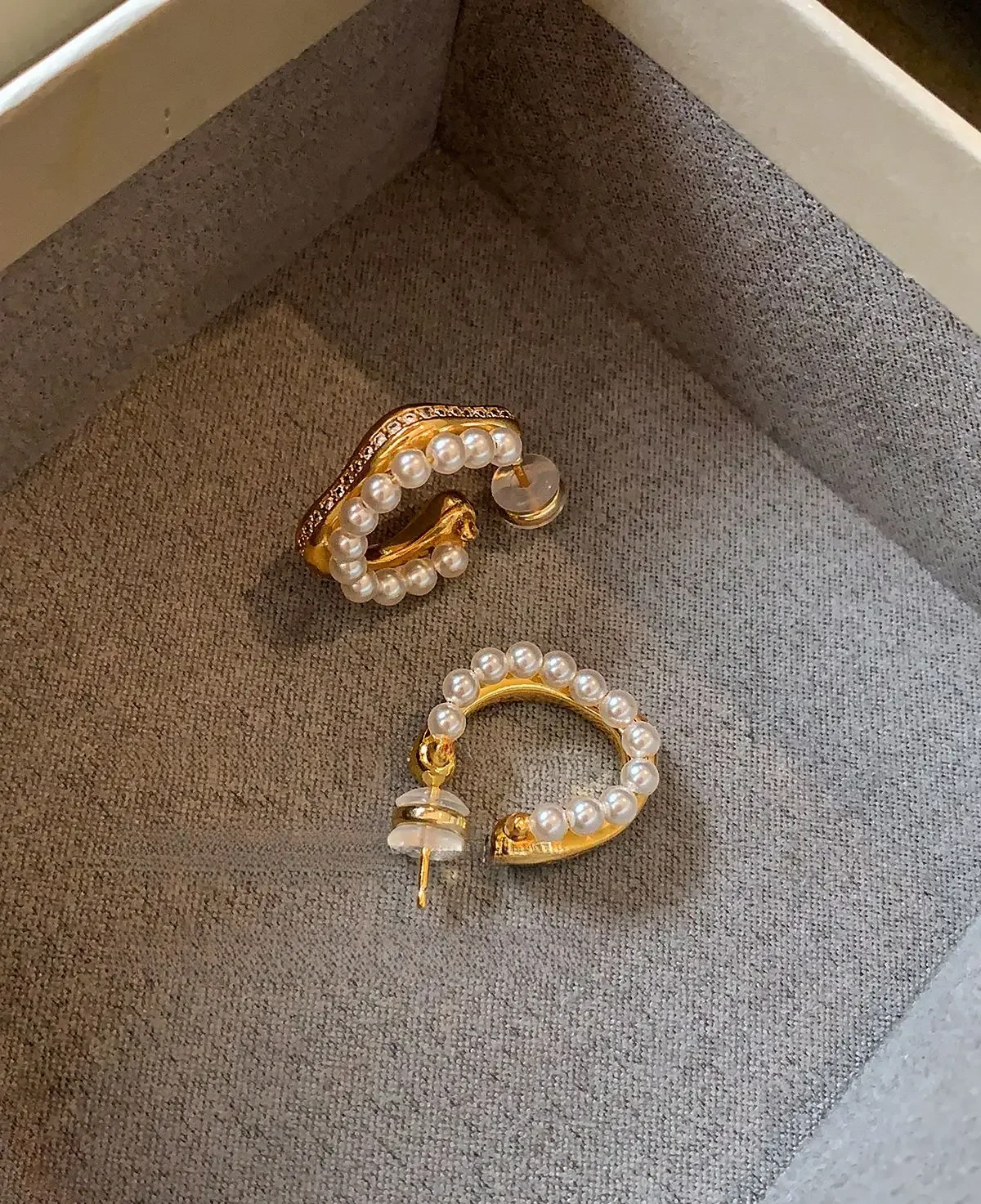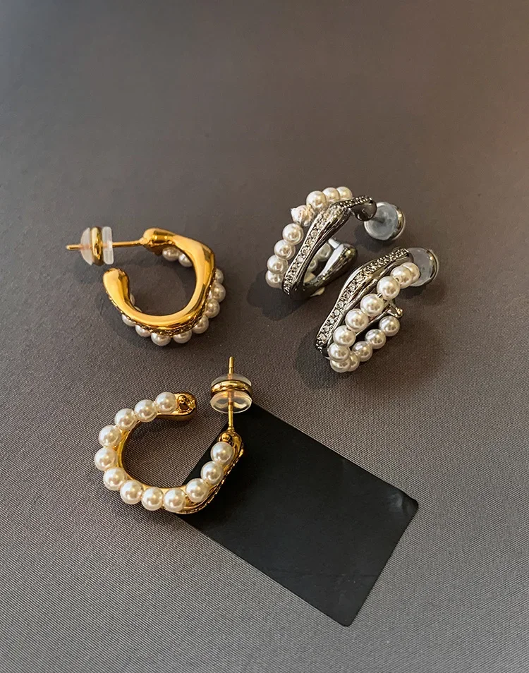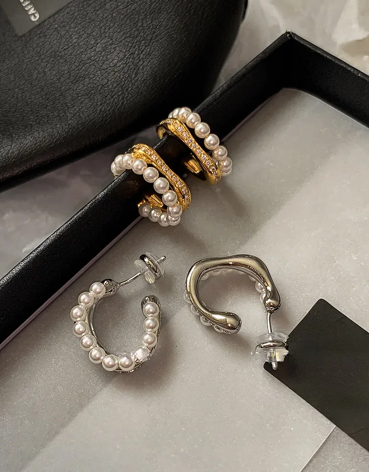 Daiiibabyyy Inlaid Rhinestone Pearl Earrings for Women European and American Retro Elegant Fashion Stud Earring Luxury High-end Jewelry