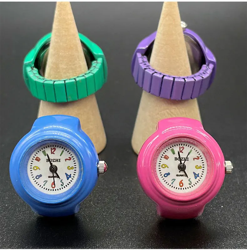 DAIIIBABYYY  -  Kids Cute Cartoon Number Watch Finger Rings Mini Clock Watches Elastic Strap Ring Women Men Funny anillos Jewelry Gift