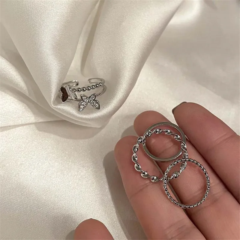 DAIIIBABYYY - Korean Butterfly Metal Punk Rings Set for Girls Women Trendy Accessories Buckle Female Index Finger Rings Party Jewelry Gifts
