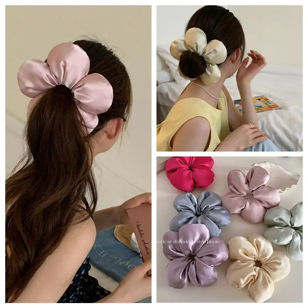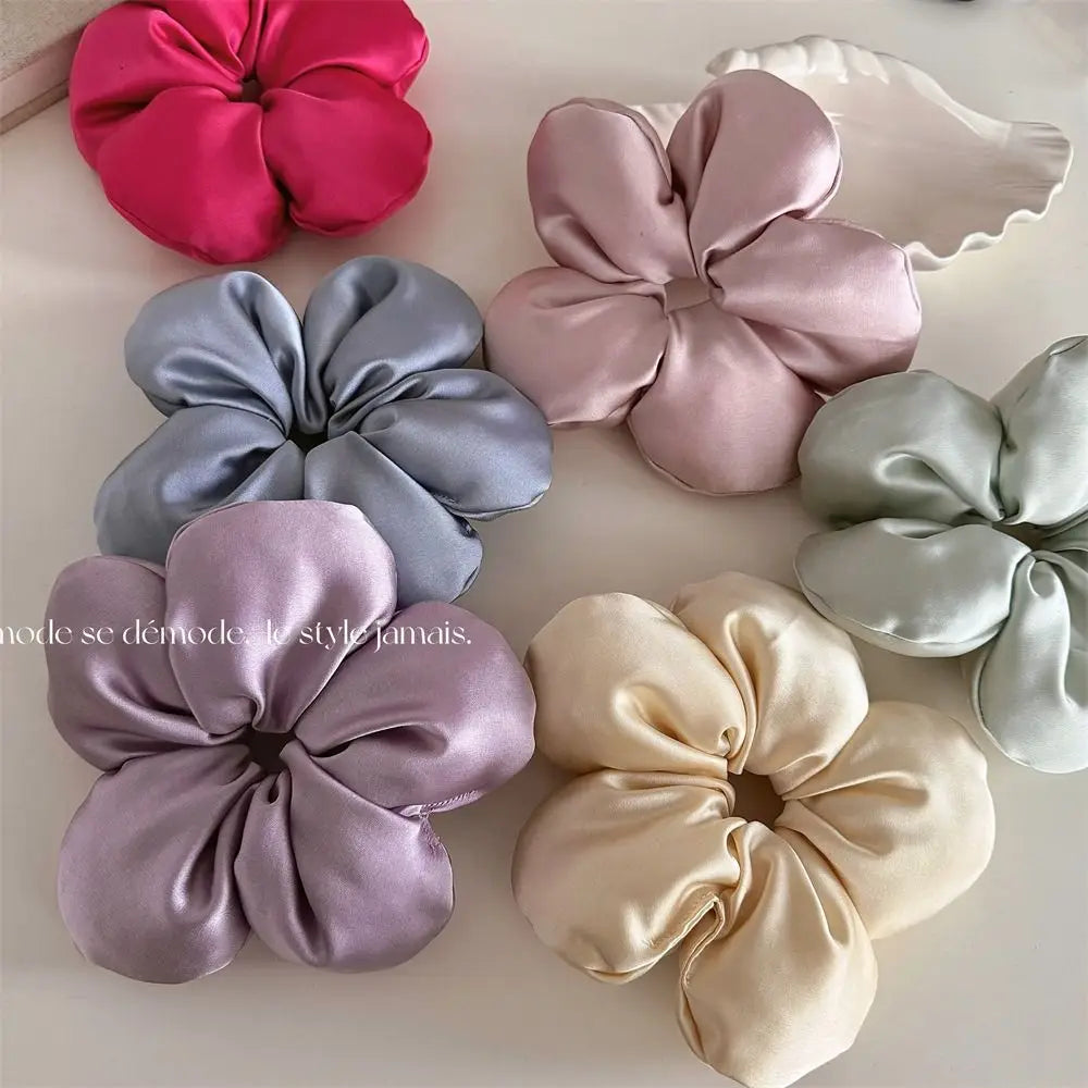 DAIIIBABYYY - Korean Exaggerated 3D Flower Hair Rings Sweet Sponge Oversize Large Satin Hair Scrunchies Hair Ropes Headbands Hair Accessories