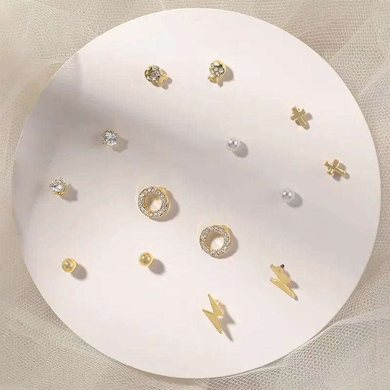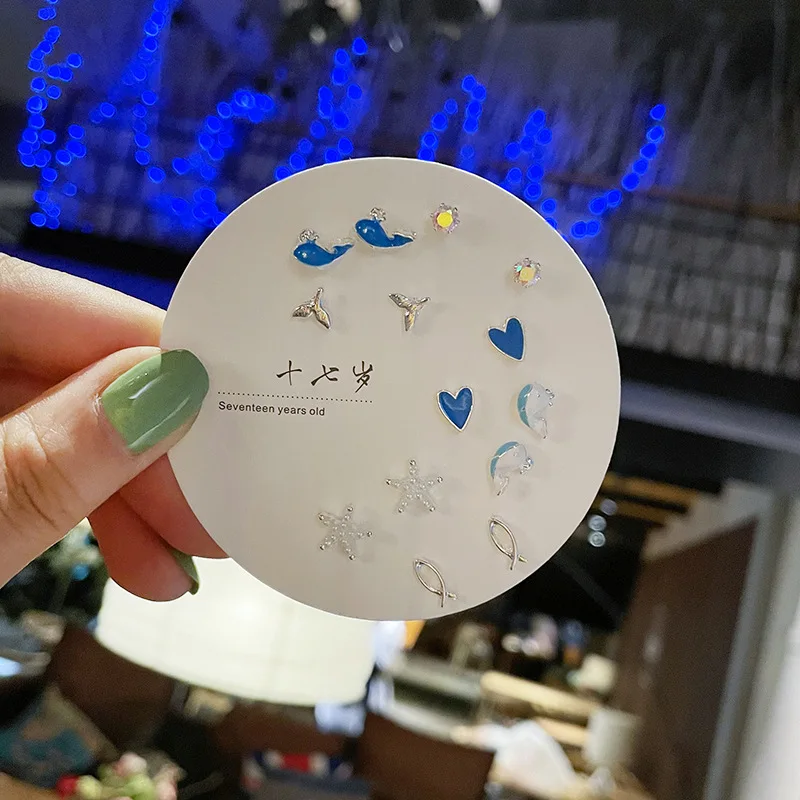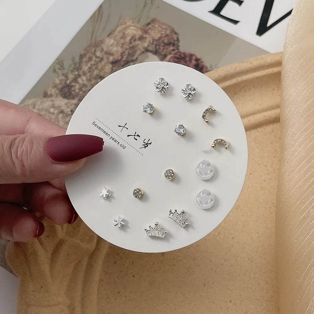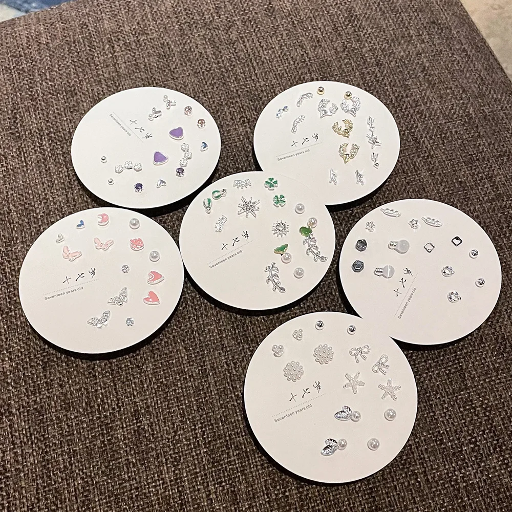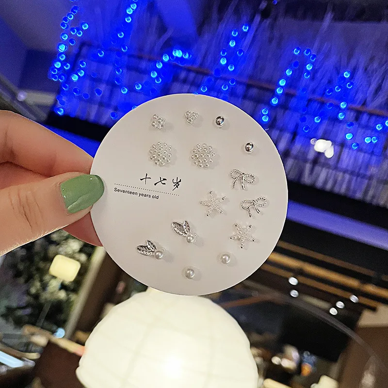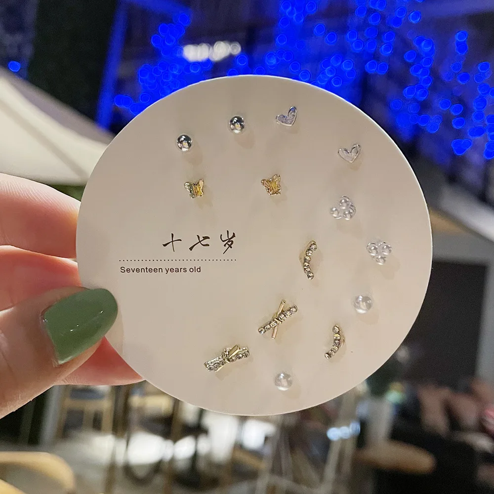 DAIIIBABYYY - Korean Fashion New Week Stud Earrings Set for Women Mini Sweet Pearl Heart Bow Rainbow Earring Luxury Jewelry Gift