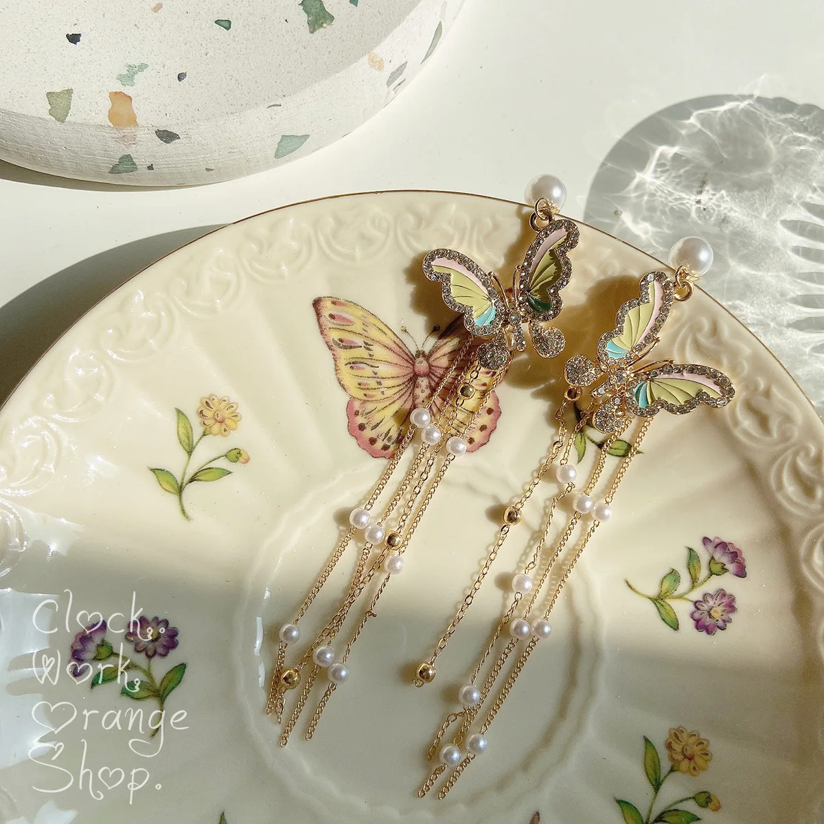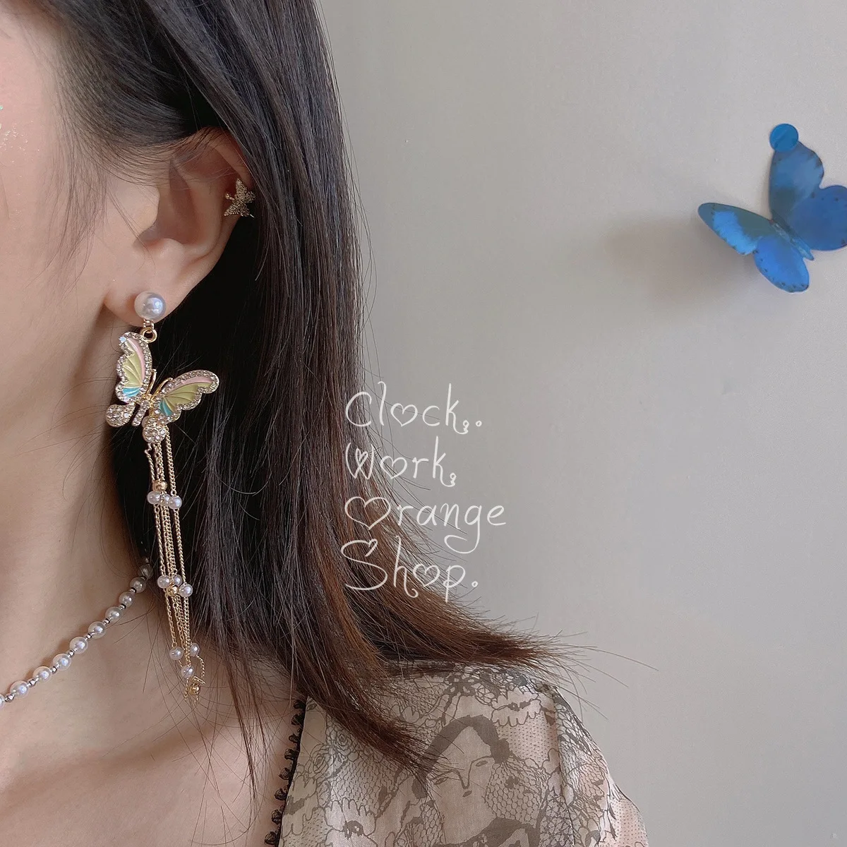 DAIIIBABYYY - Korean Fashion Pearl Long Drop Earring Jewelry Needle Cute Butterfly Tassel Dangle Earrings for Women Accessories