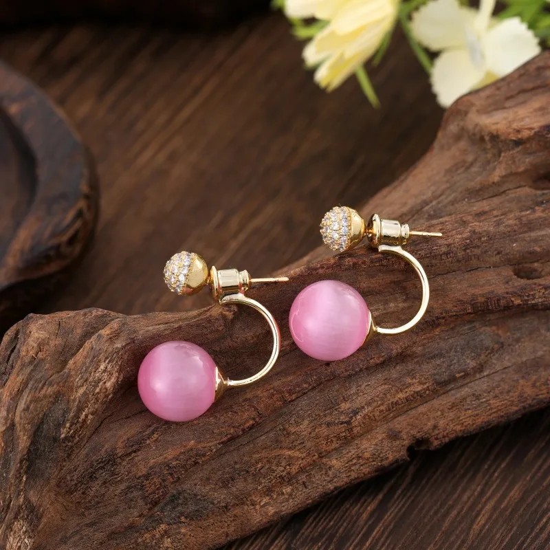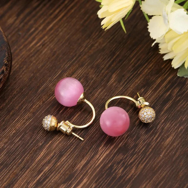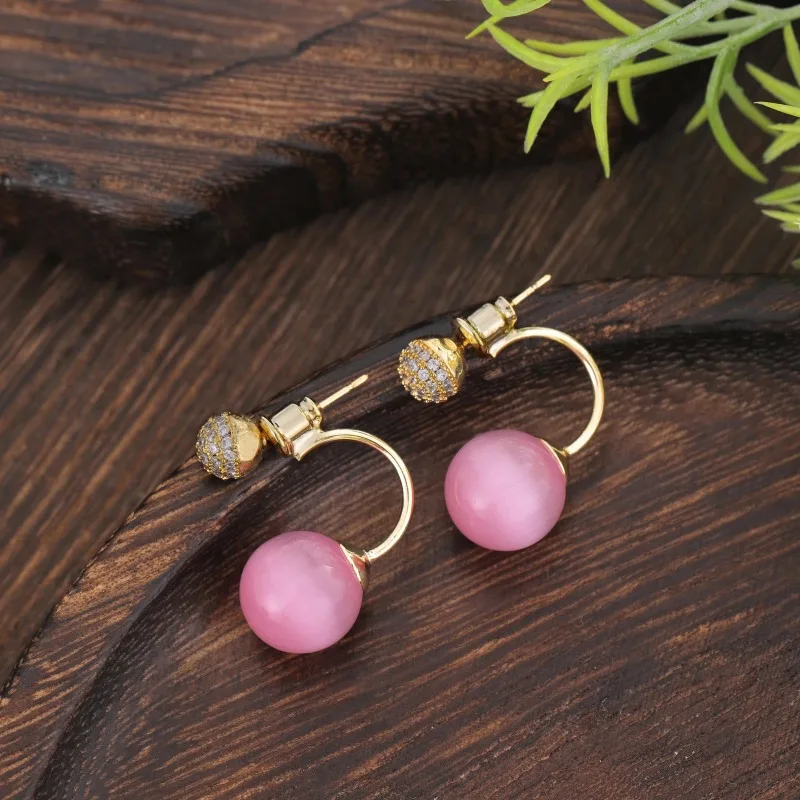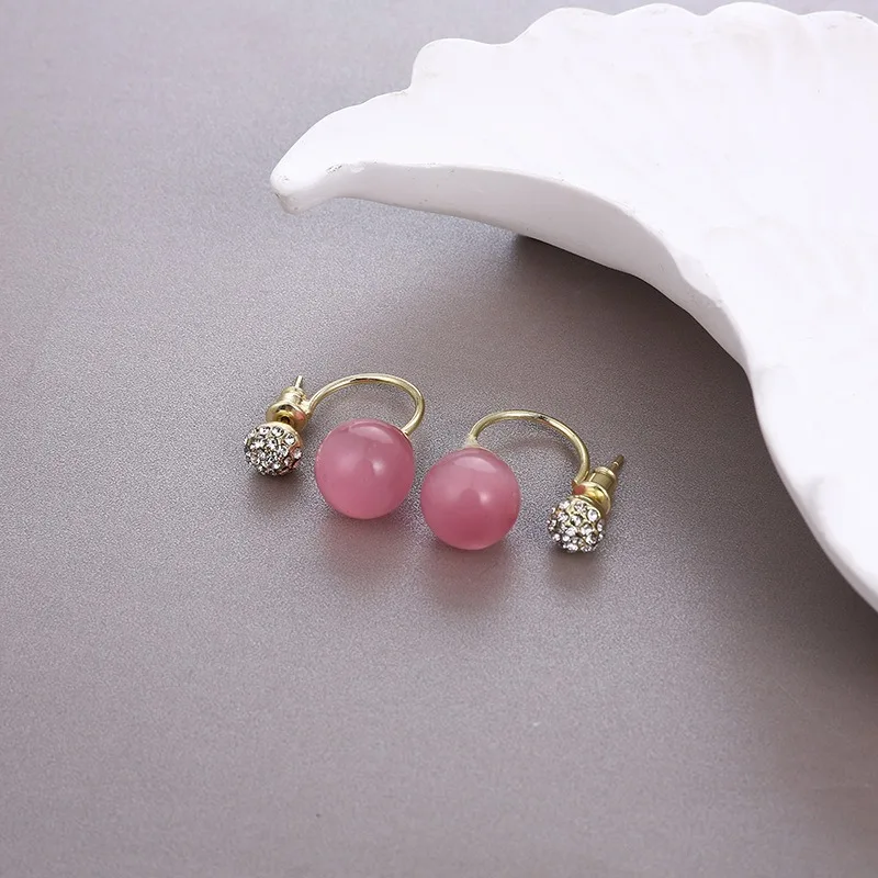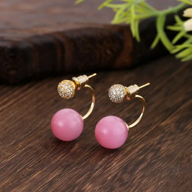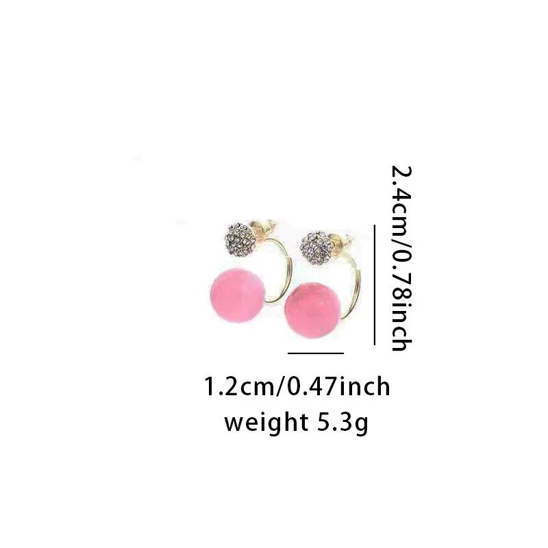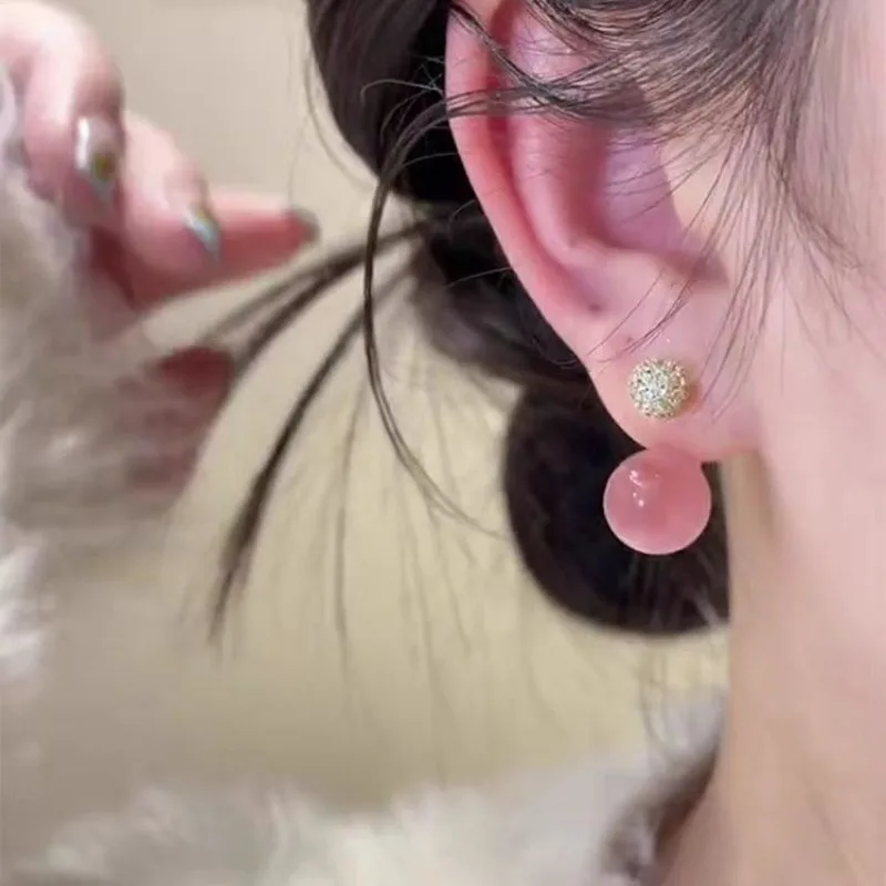 DAIIIBABYYY  -  Korean Sweet Pink Round Bead Earrings Set with Shiny Cubic Zirconia Stud Earrings for Women Elegant Fashion Jewelry Accessories