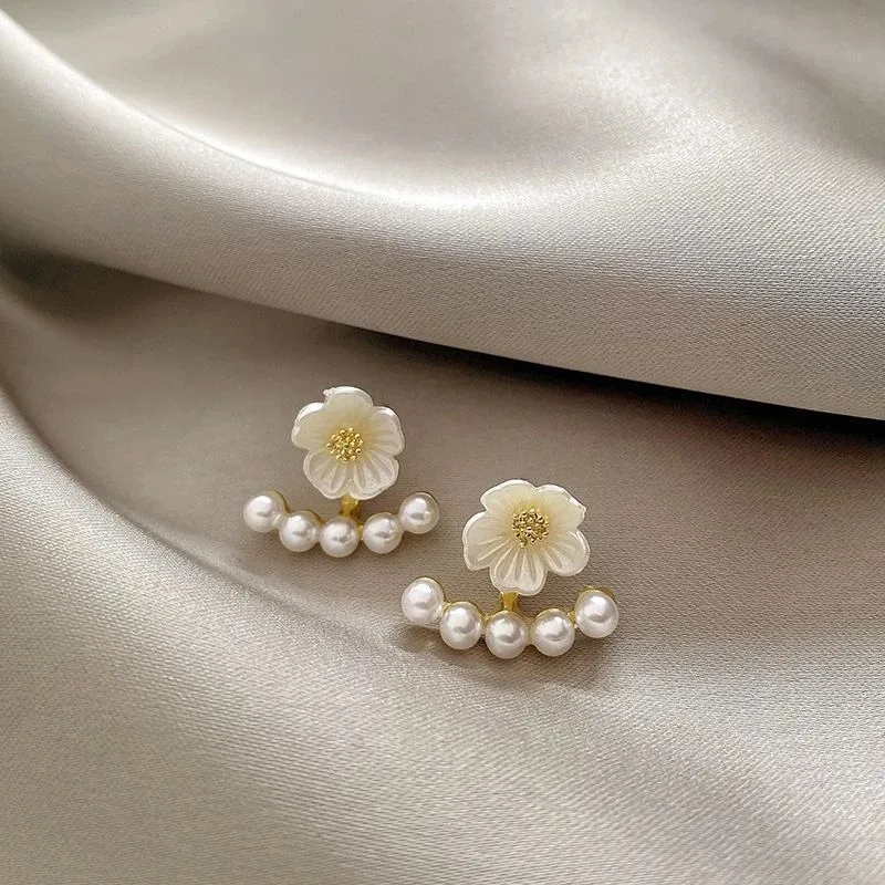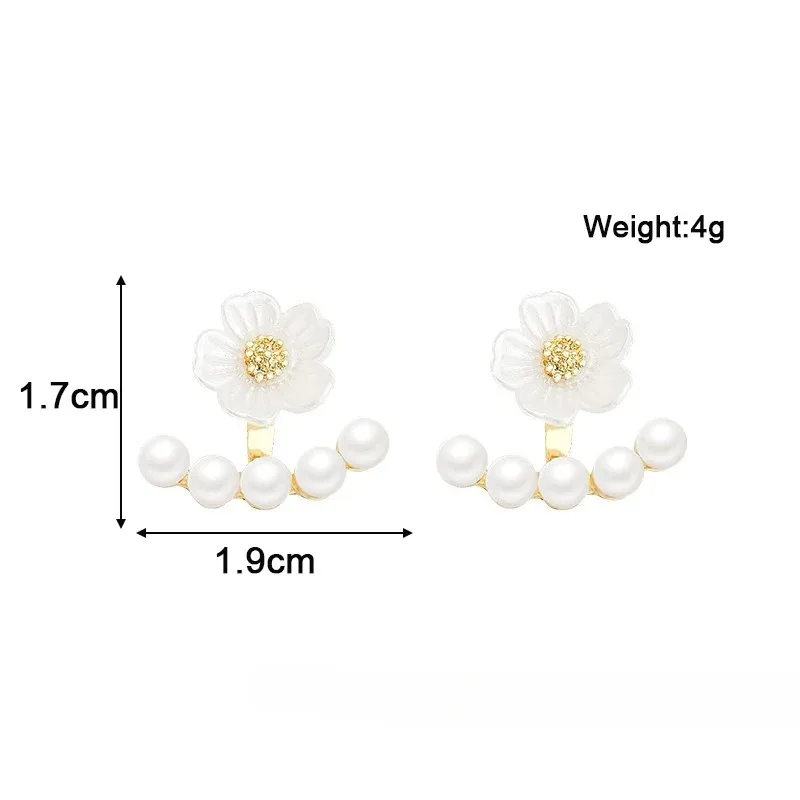 DAIIIBABYYY - Korean Version of The Fashion Imitation Pearl Flower Earrings Women Sweet Romantic Jewellery Holiday Party Exquisite Accessories