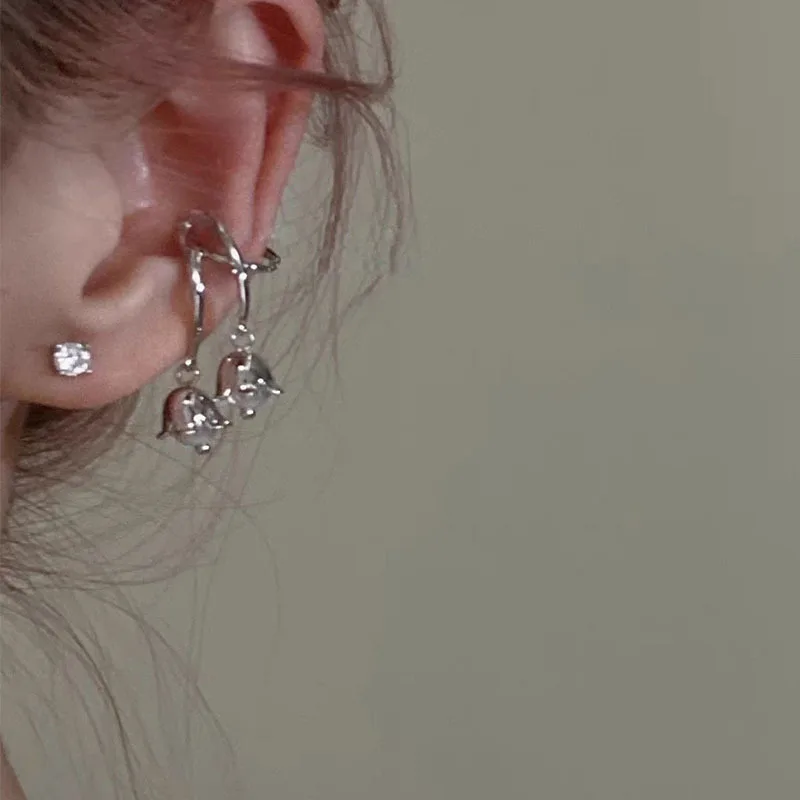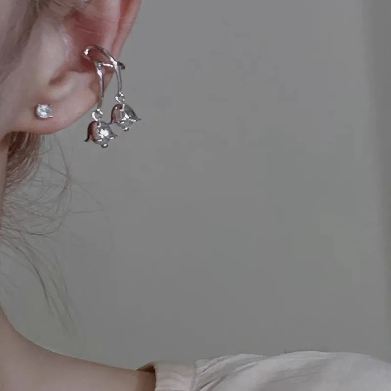 DAIIIBABYYY - Lily of the Valley Flower Drop Ear Cuff Earrings Clips for Women Floral No-piercing Korean Fashion Earring Jewelry