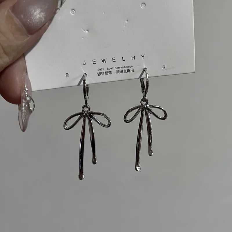 DAIIIBABYYY - Long Bowknot Pendant Drop Earrings Women Girls Gold Color Stainless Steel Bow-tie Earring Sweet Jewelry Christmas Gift
