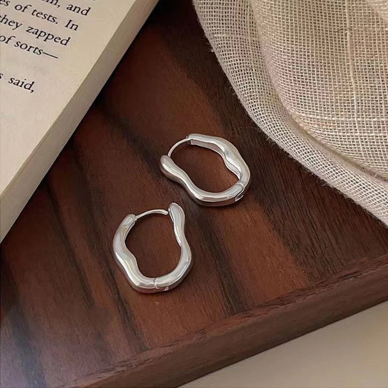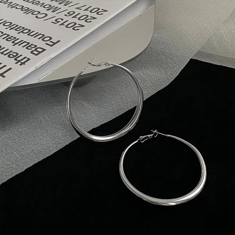 Daiiibabyyy Luxury Top Quality Smooth Star Zircon Hoop Earrings for Women Girls Metal Chunky Sun Rhinestone Ear Buckle Punk Y2K Jewelry