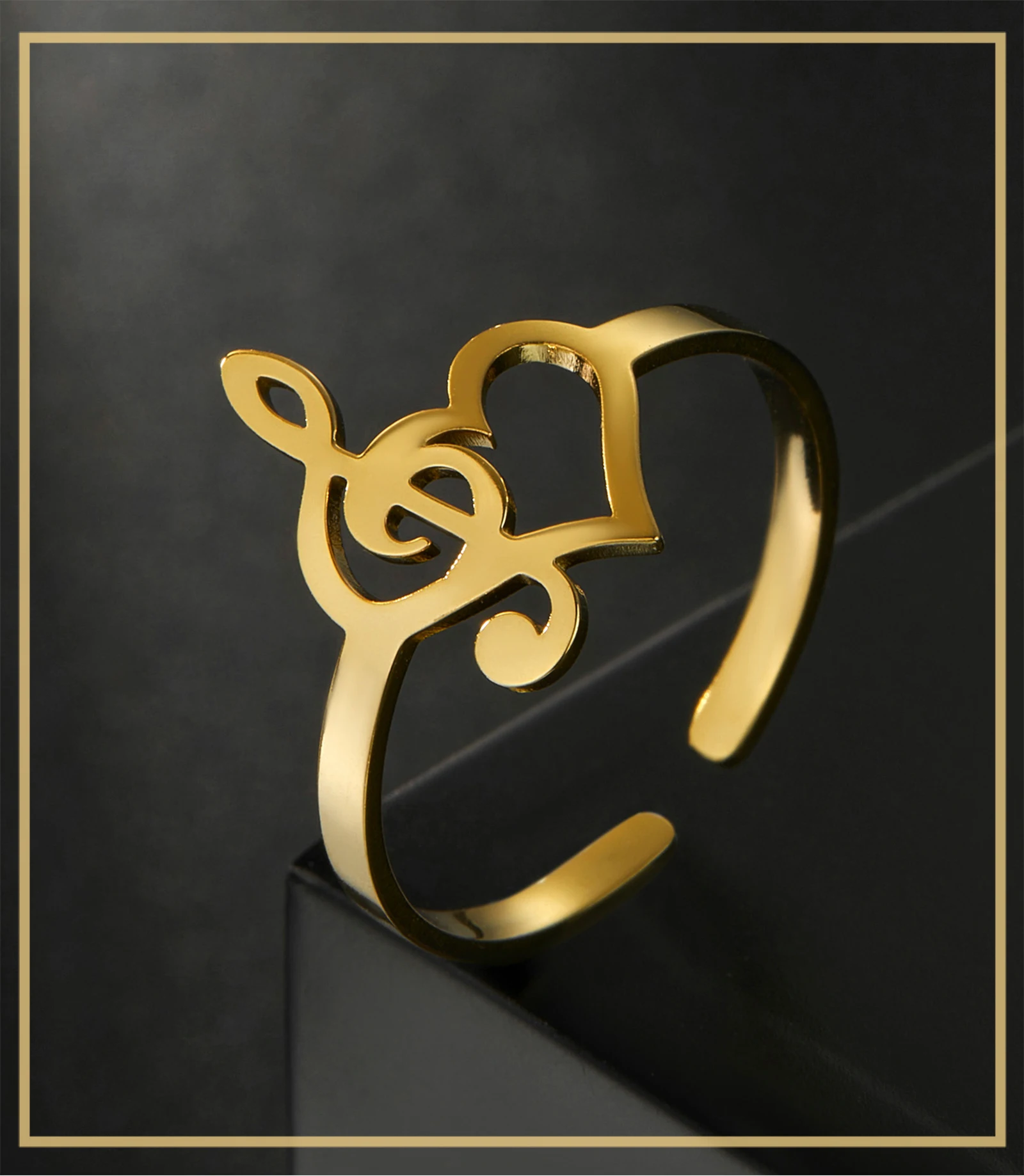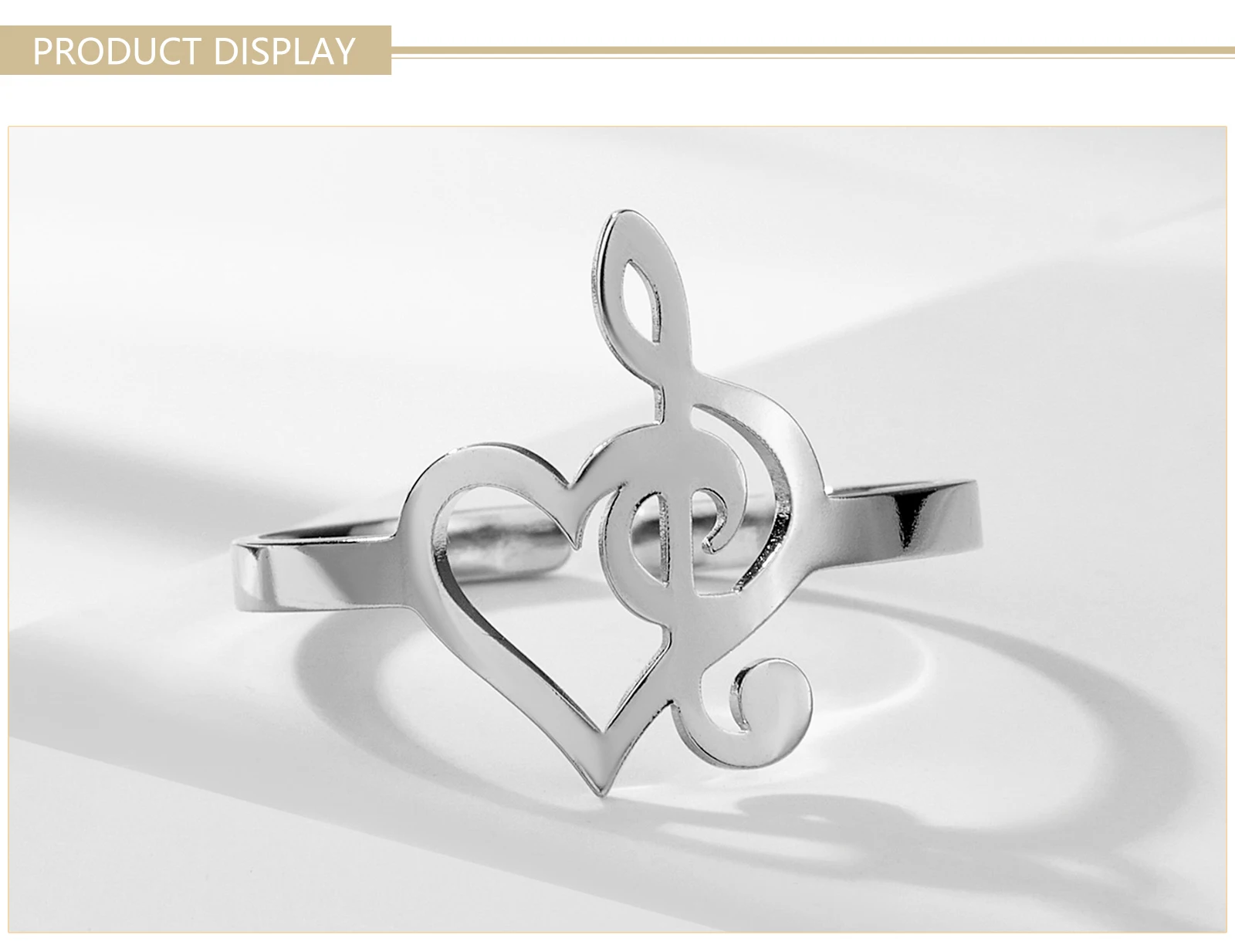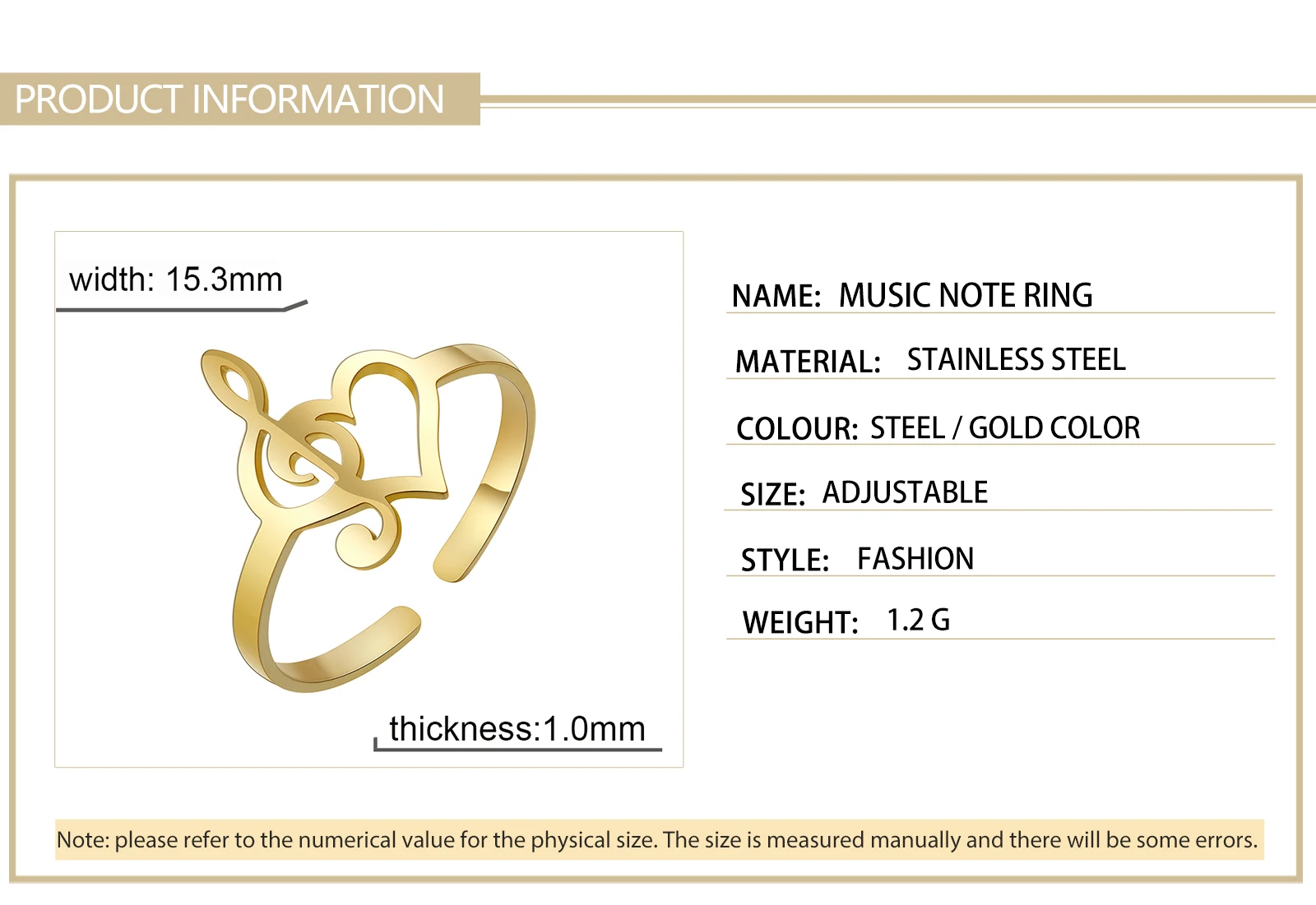 DAIIIBABYYY - Music Note Heart of Treble and Bass Ring Women Stainless Steel Gold Color Open Finger Rings 2024 Fashion Jewelry Gift
