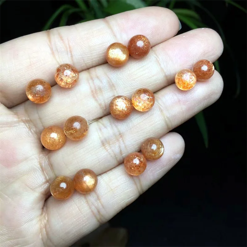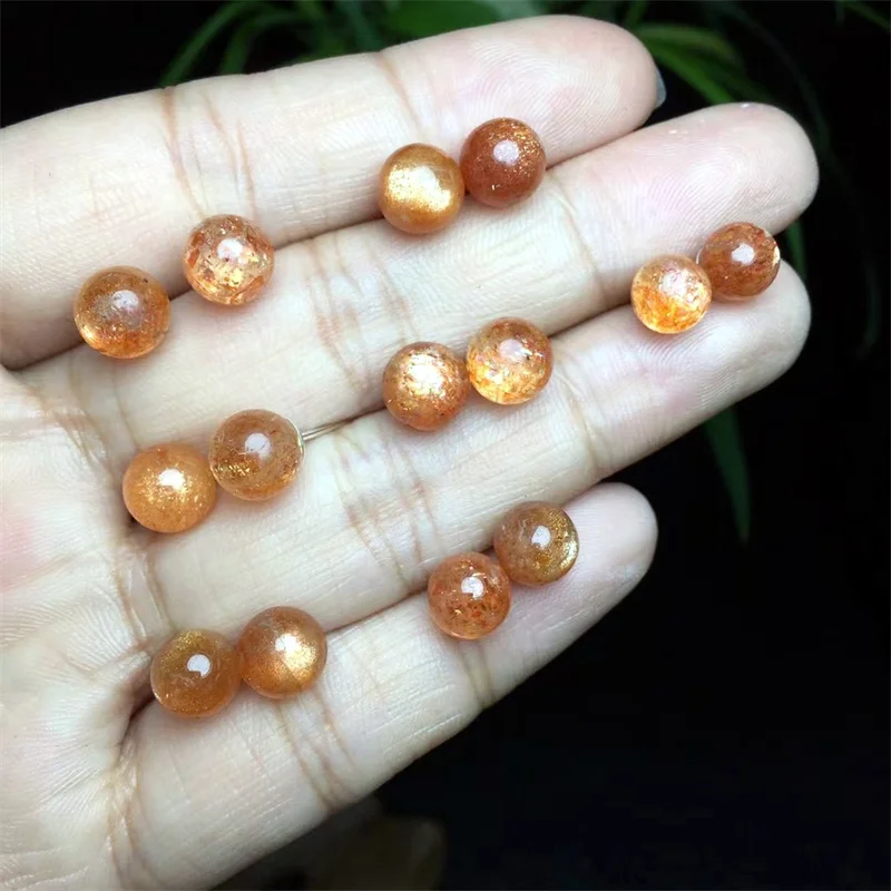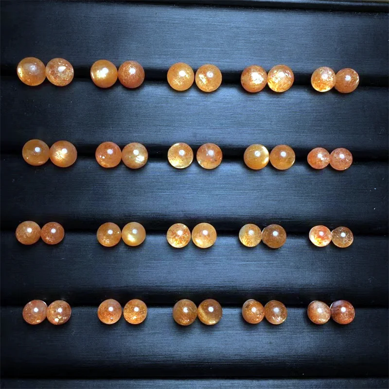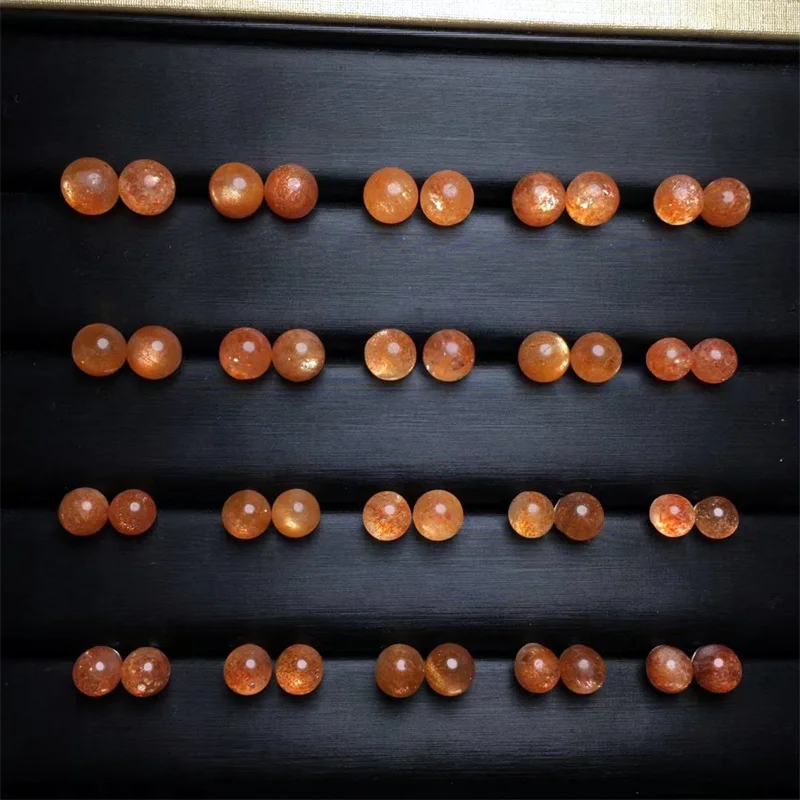 DAIIIBABYYY - Natural Golden Sunstone Round Beads Jewelry Charms Earrings For Women Man Healing Crystal Energy Christmas Gift 1pair