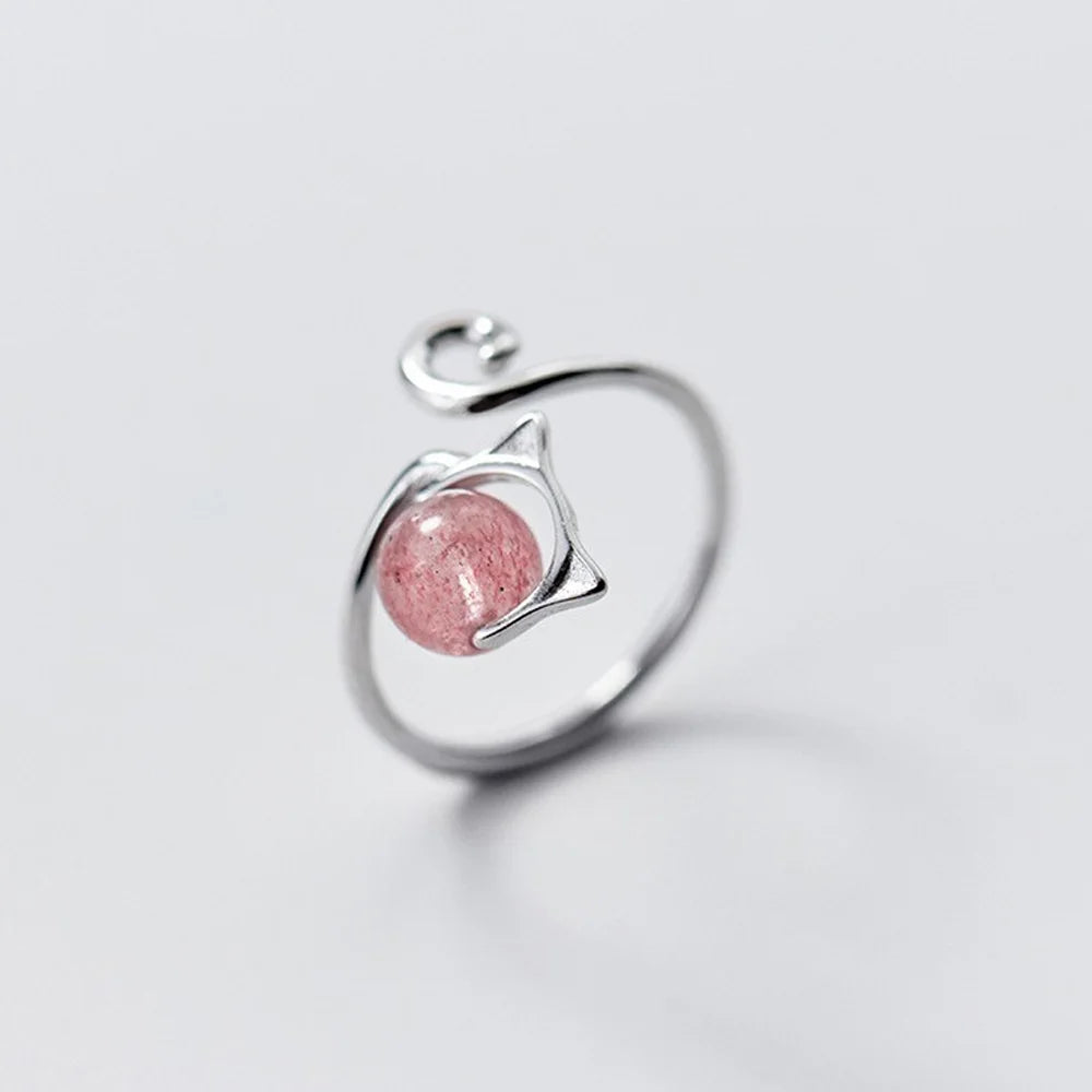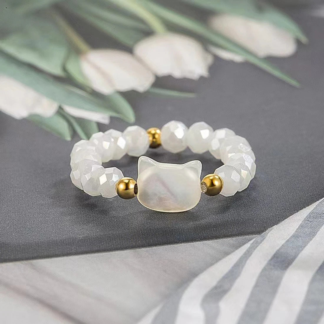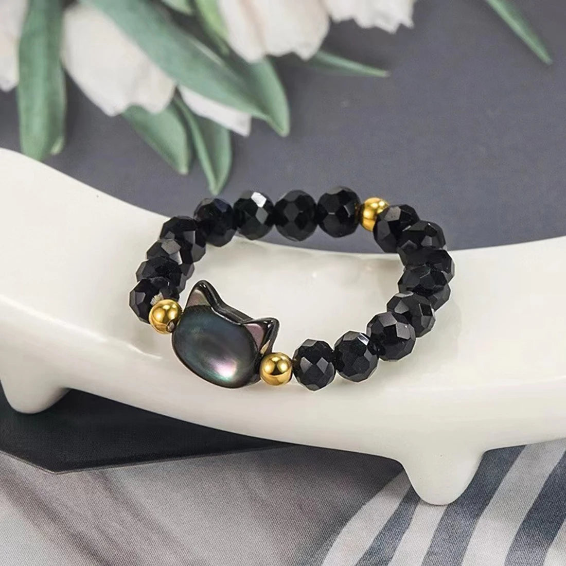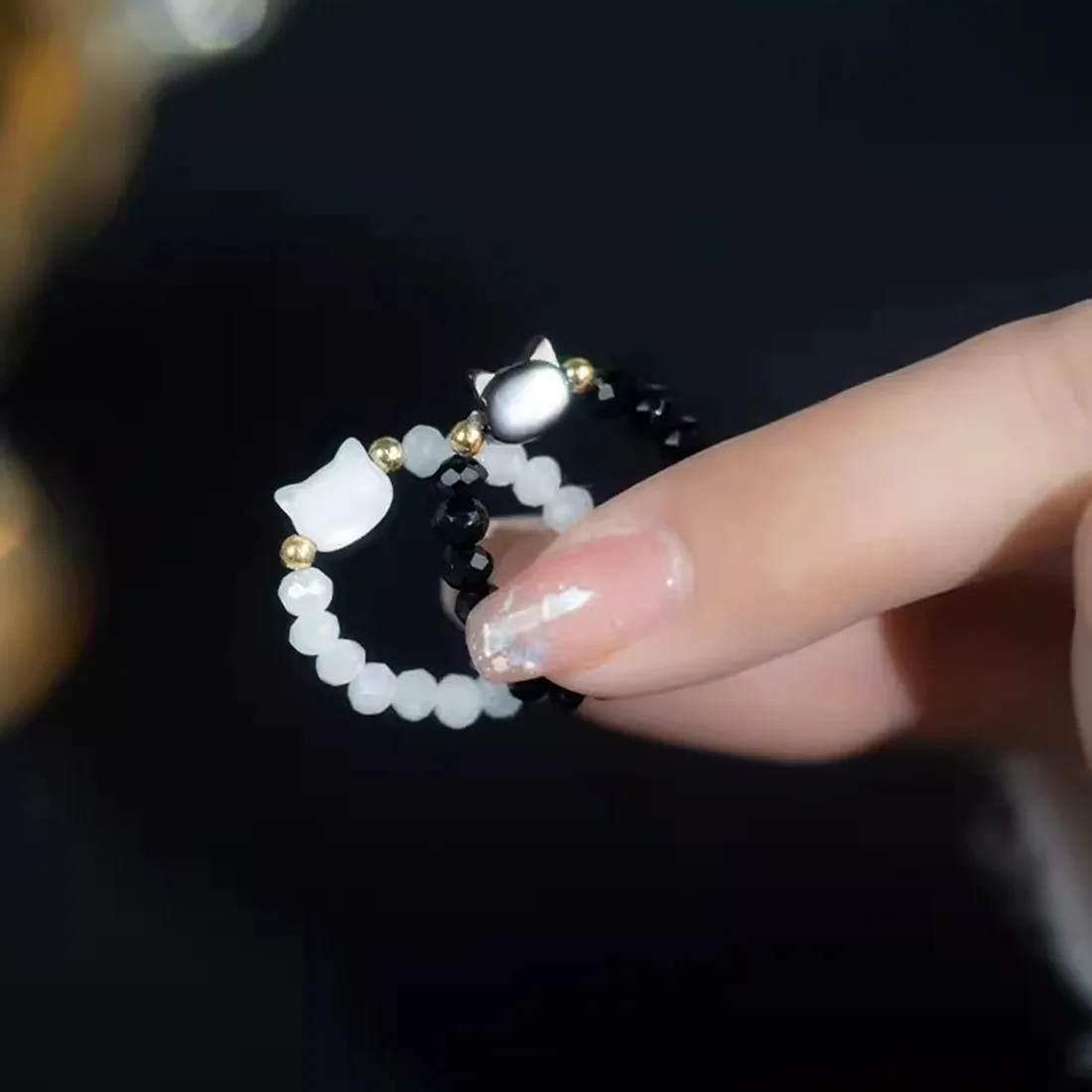 DAIIIBABYYY - Natural Moonstone Obsidian Rings Beads Minimalist Fidget Ring Women Handmade Cute Black White Cat Ring Party Accessories Jewelry