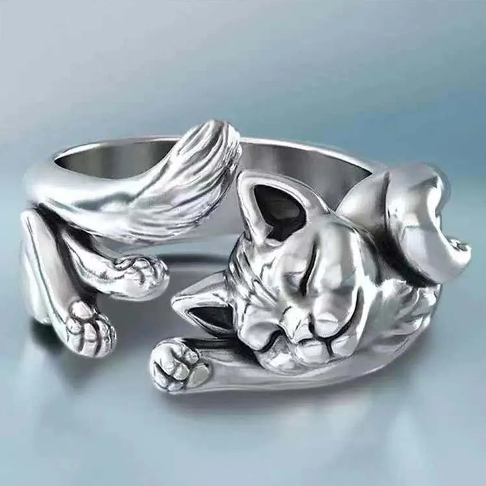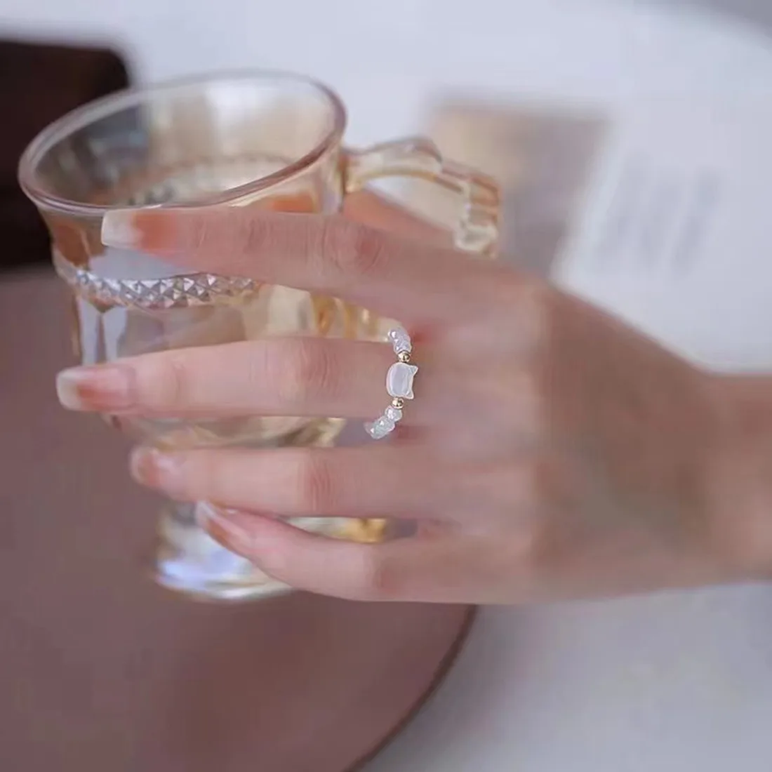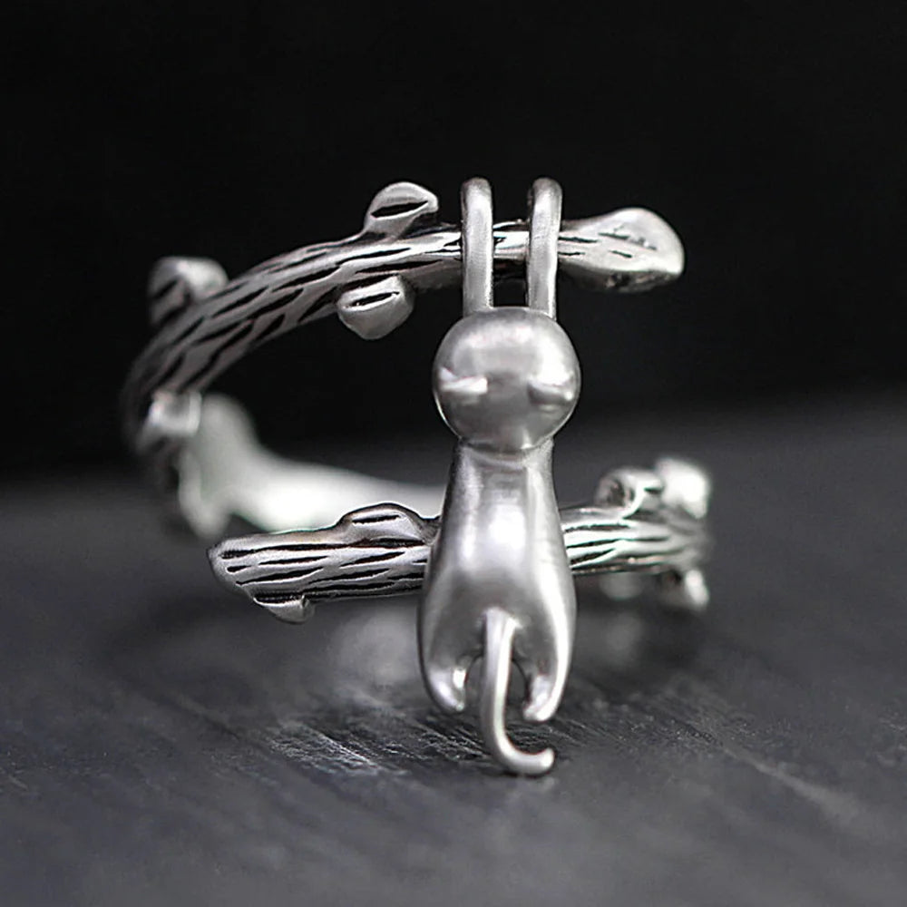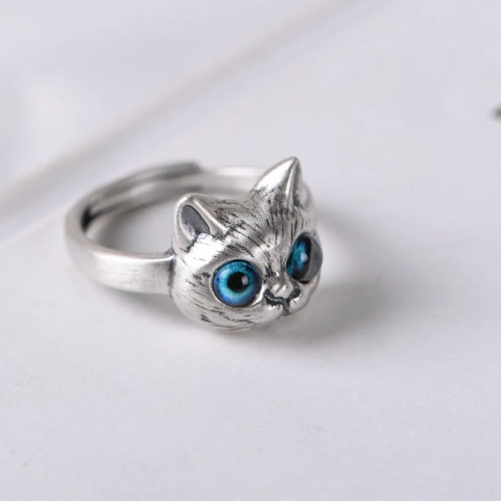 DAIIIBABYYY - Natural Moonstone Obsidian Rings Beads Minimalist Fidget Ring Women Handmade Cute Black White Cat Ring Party Accessories Jewelry