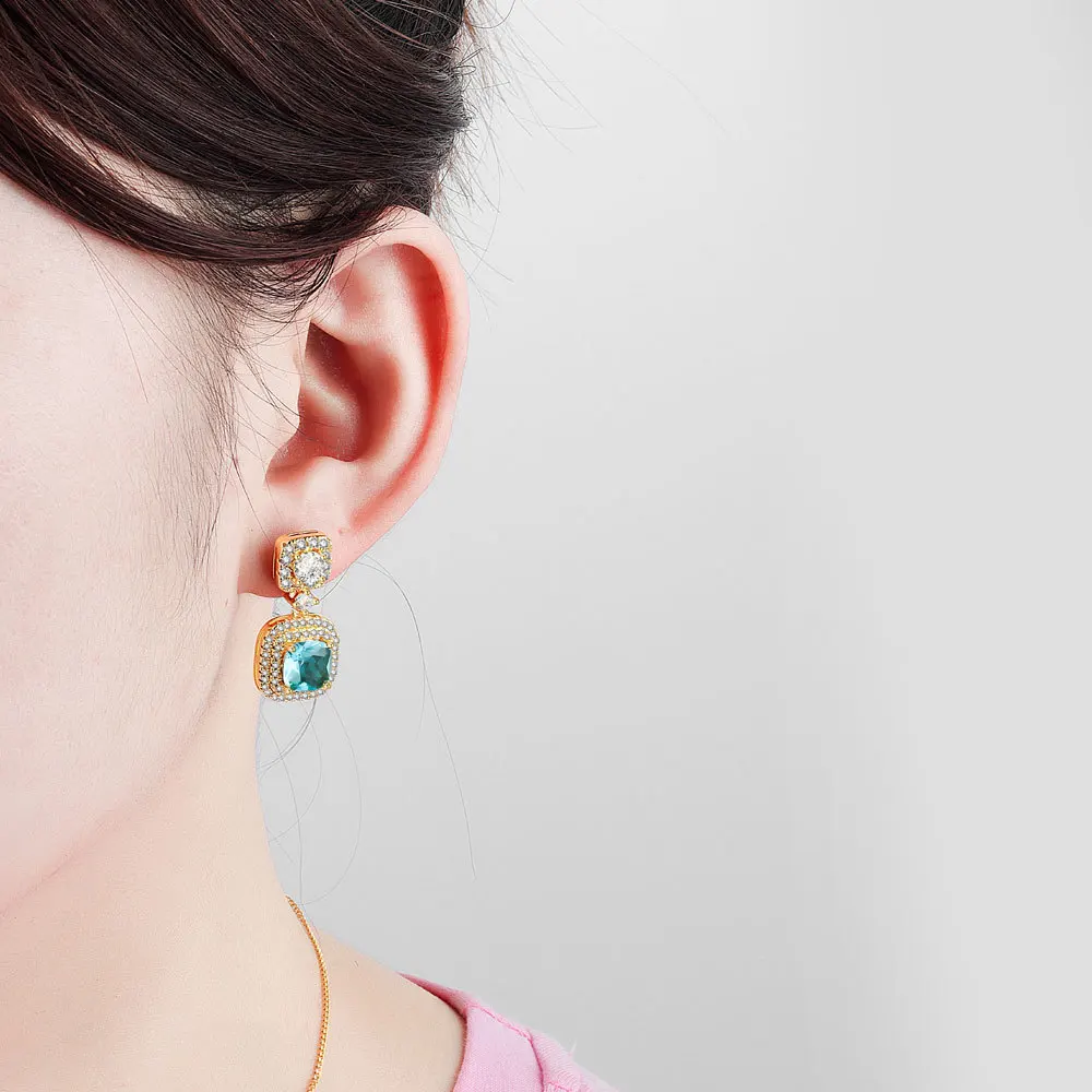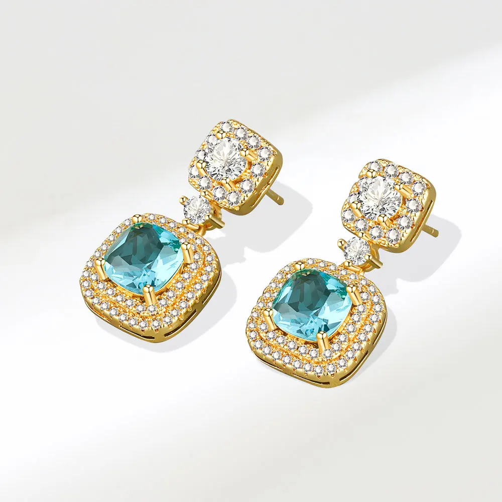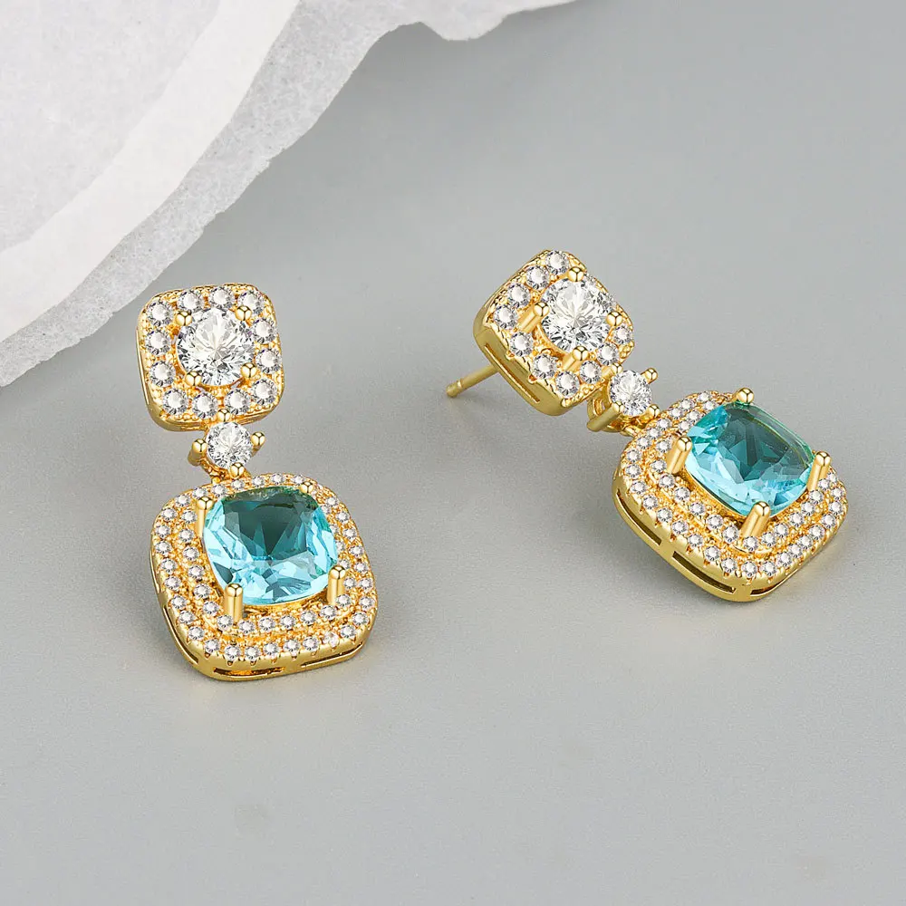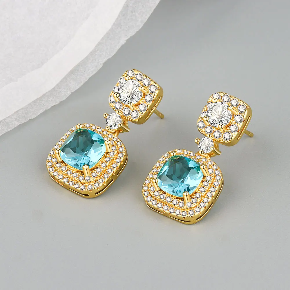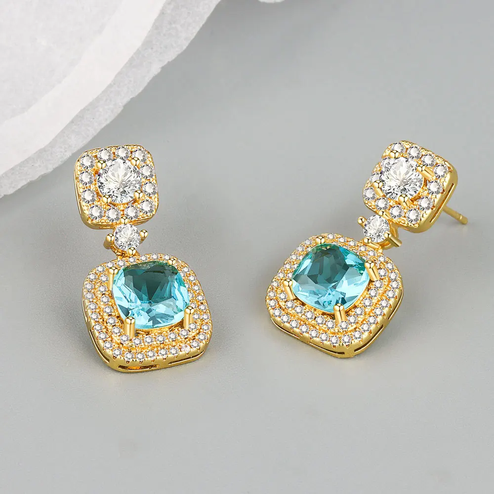 DAIIIBABYYY - New Arrival Elegant Shiny CZ Zircon Square Star 925 Silver Needle Ladies Tassels Stud Earrings Jewelry For Women Not Allergic