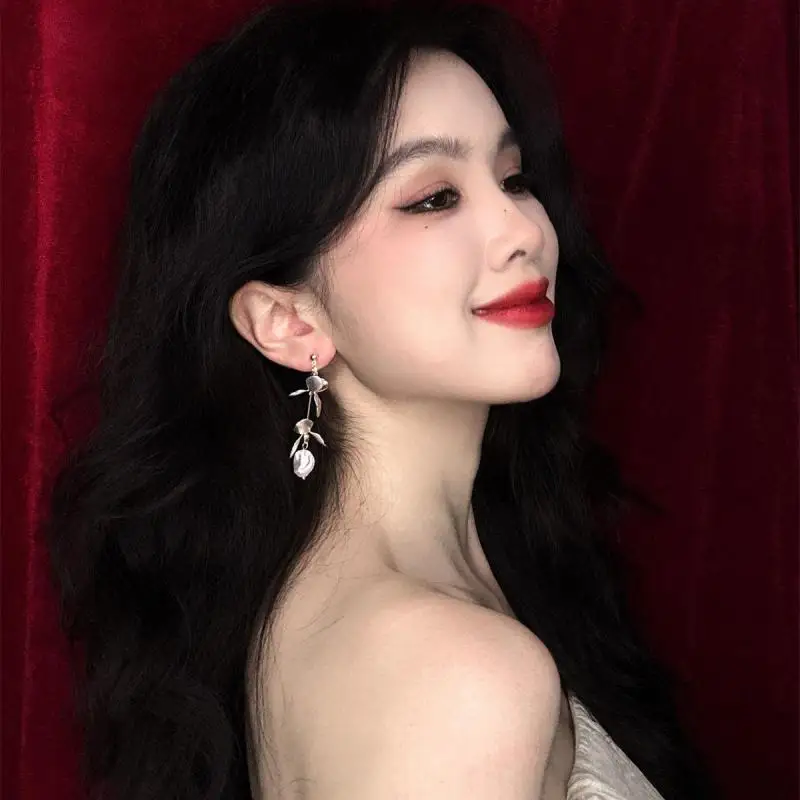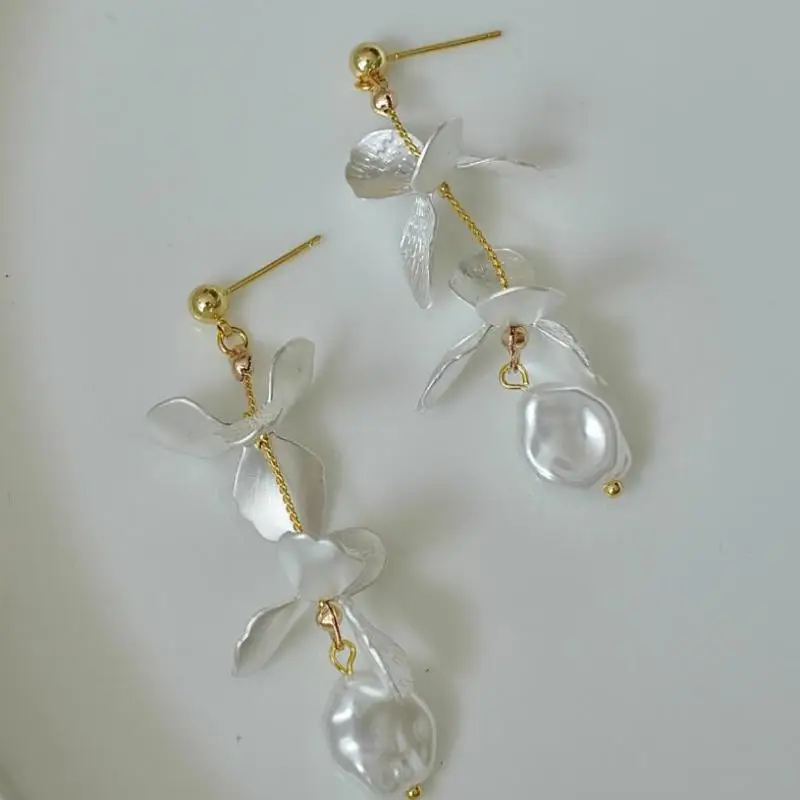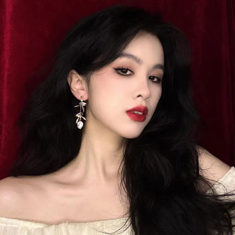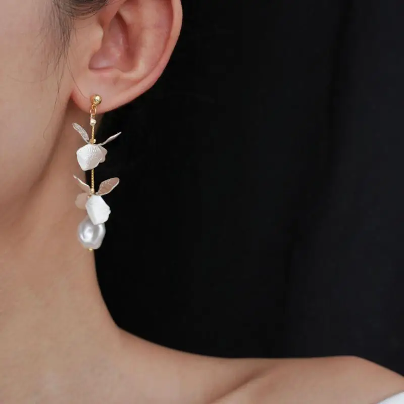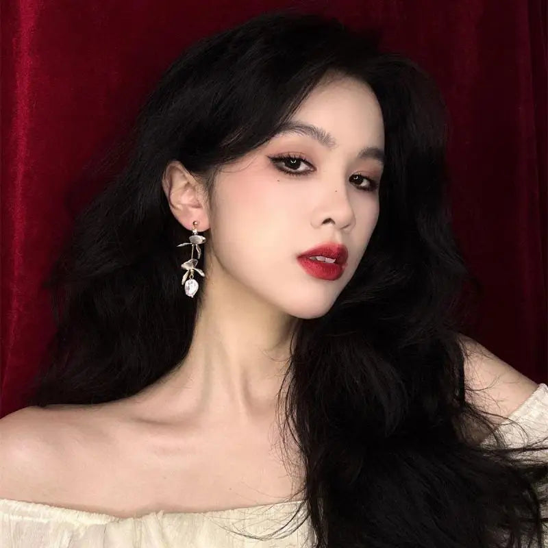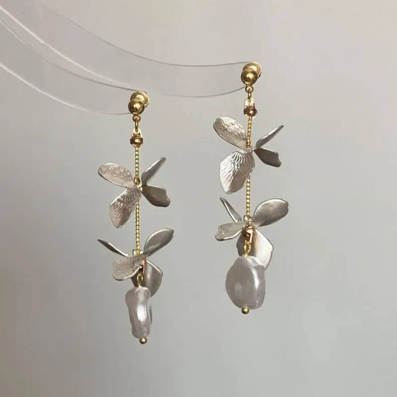 DAIIIBABYYY - New Arrival French Retro Niche Design Flower Pearl Dangle Earrings For Women Fashion Elegant Geometry Jewelry Party Gifts