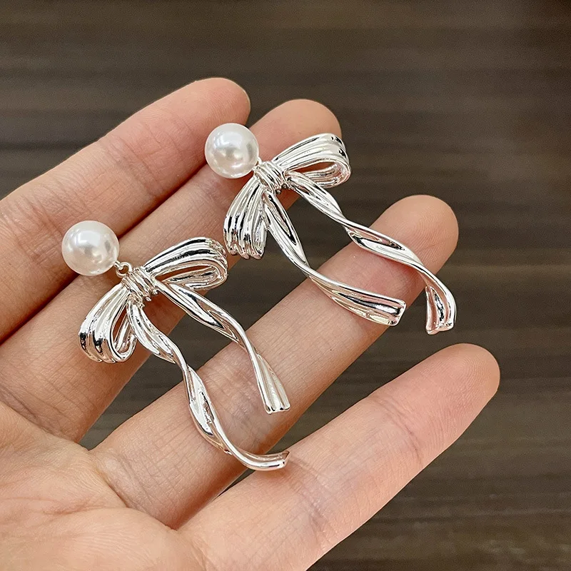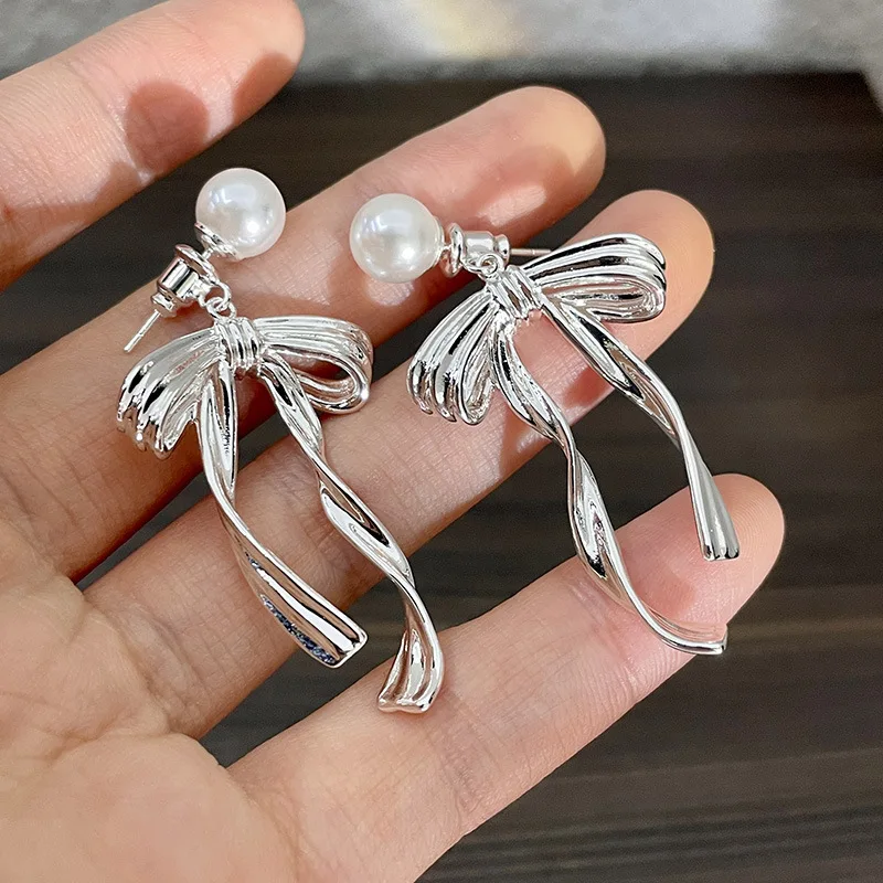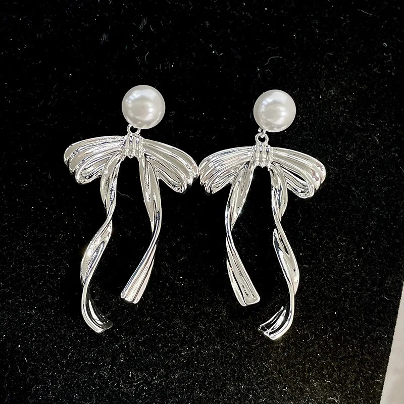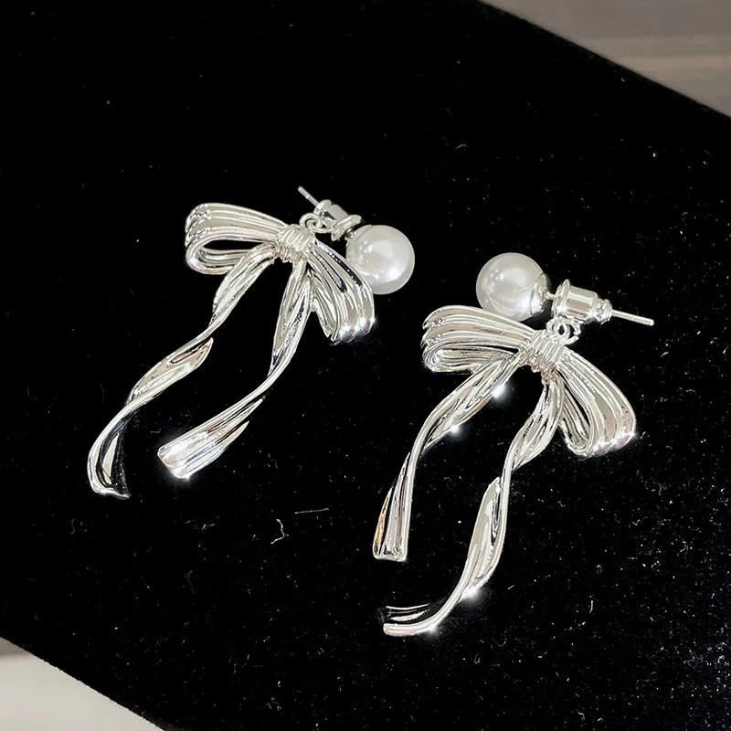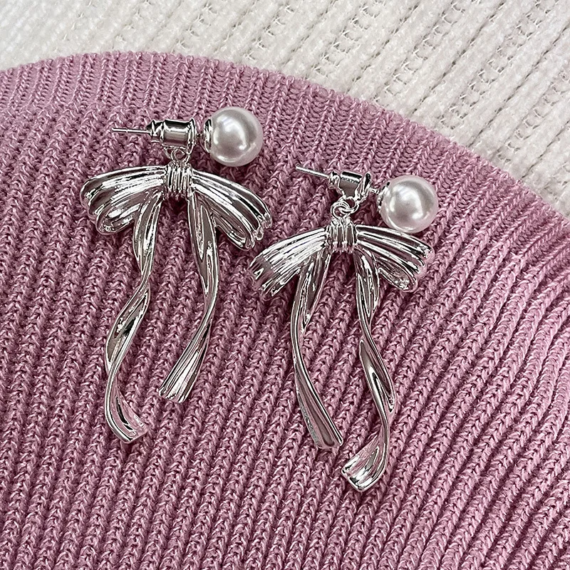 DAIIIBABYYY - New Arrival South Korea Light Luxury Tassel Long Pearl Bow Dangle Earrings For Women Fashion Sweet Metal Jewelry Gifts
