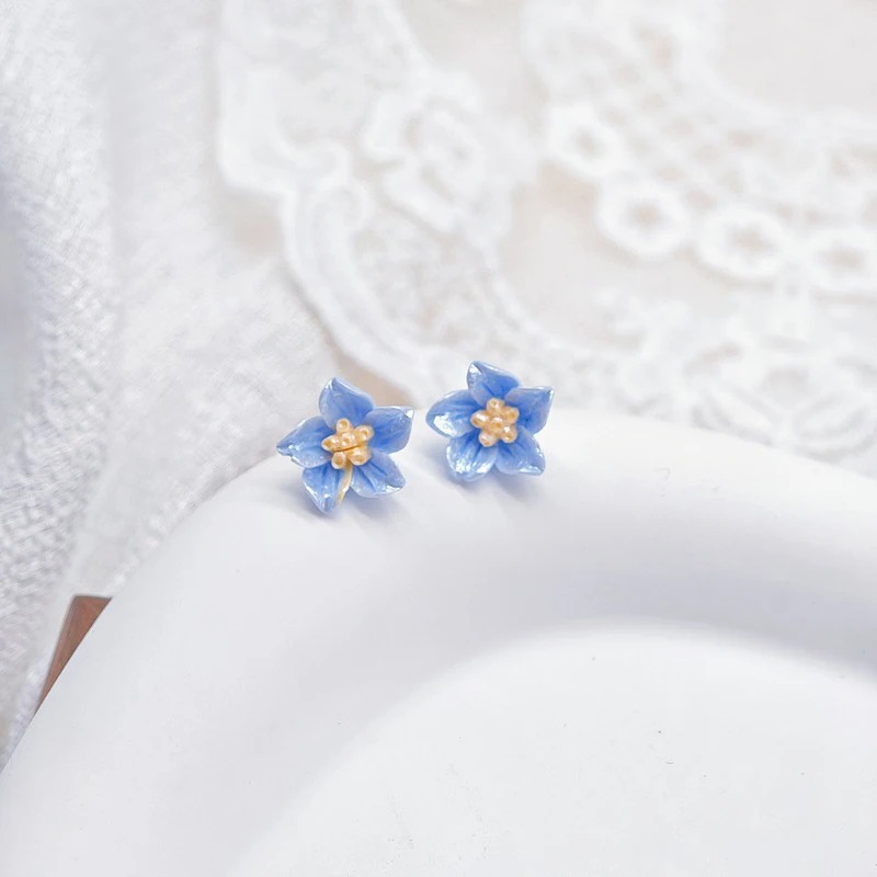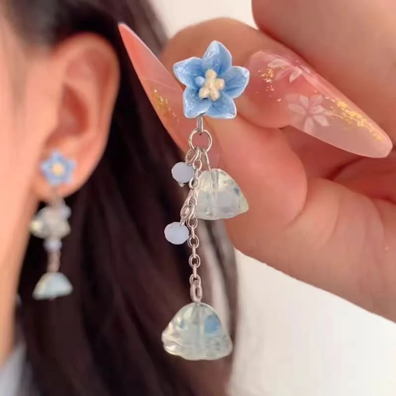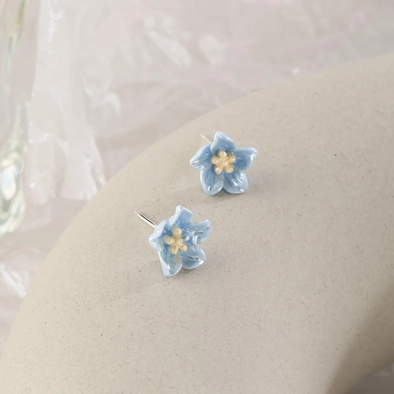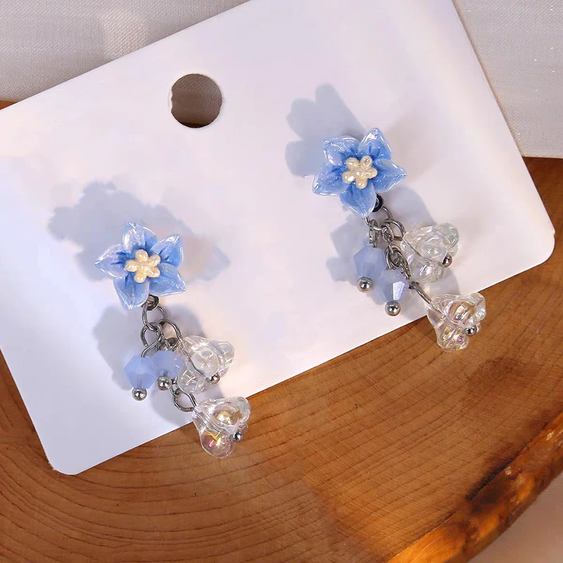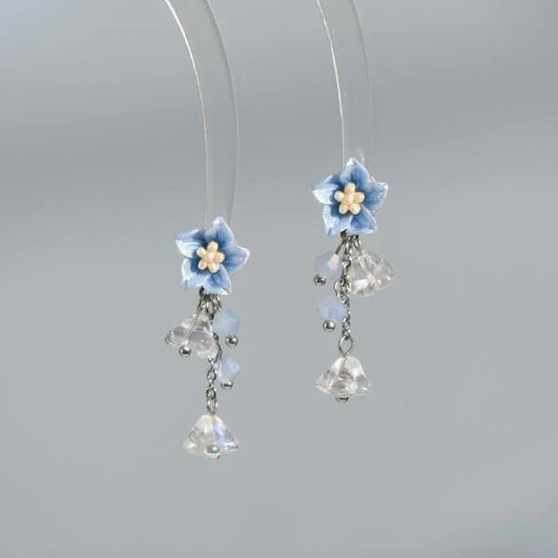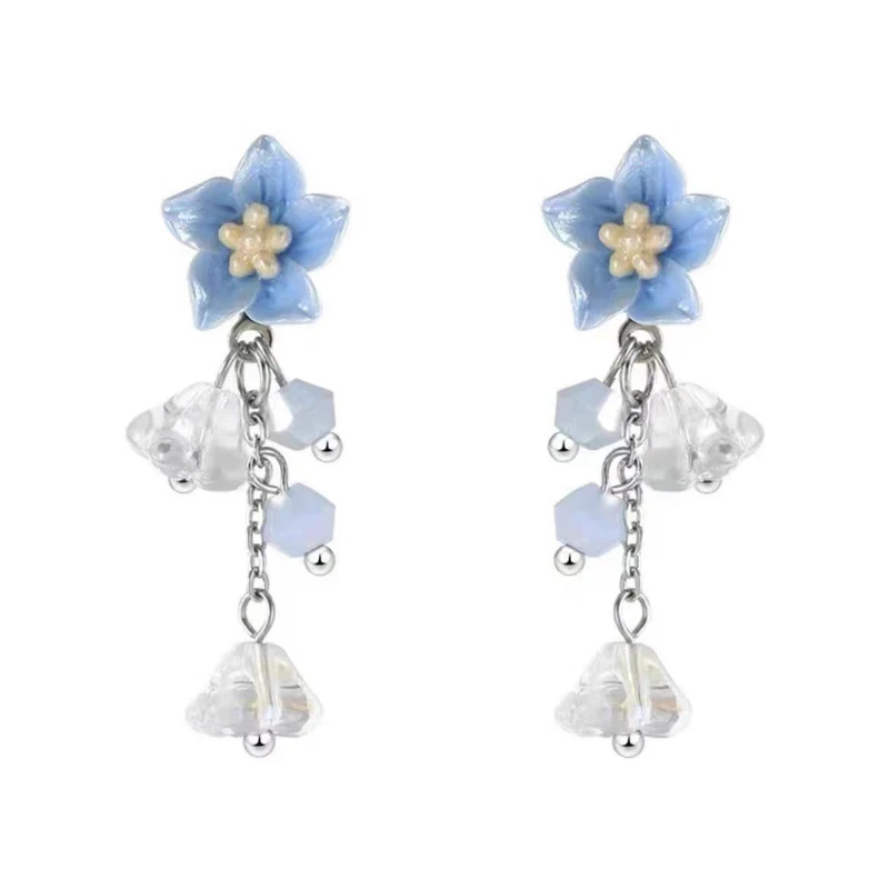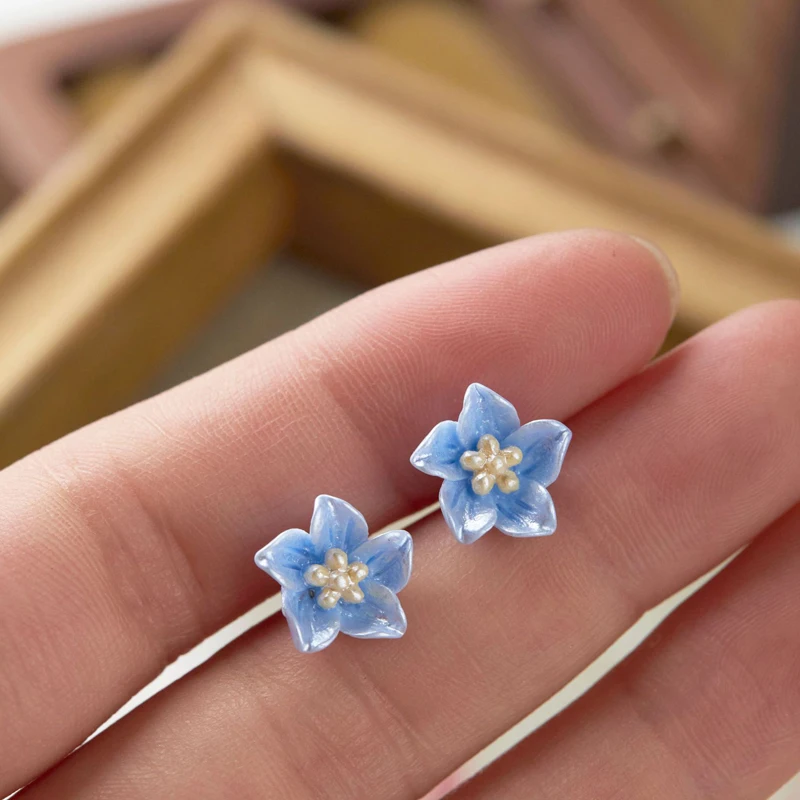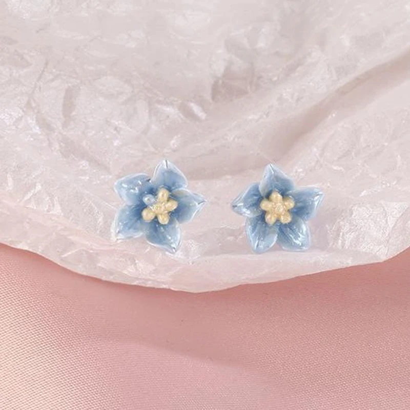 Daiiibabyyy  New Blue Flower Dangle Earrings for Women Exquisite Sweet Romantic Floral Ear Studs Versatile Fine Jewelry Gifts Wholesale 2025