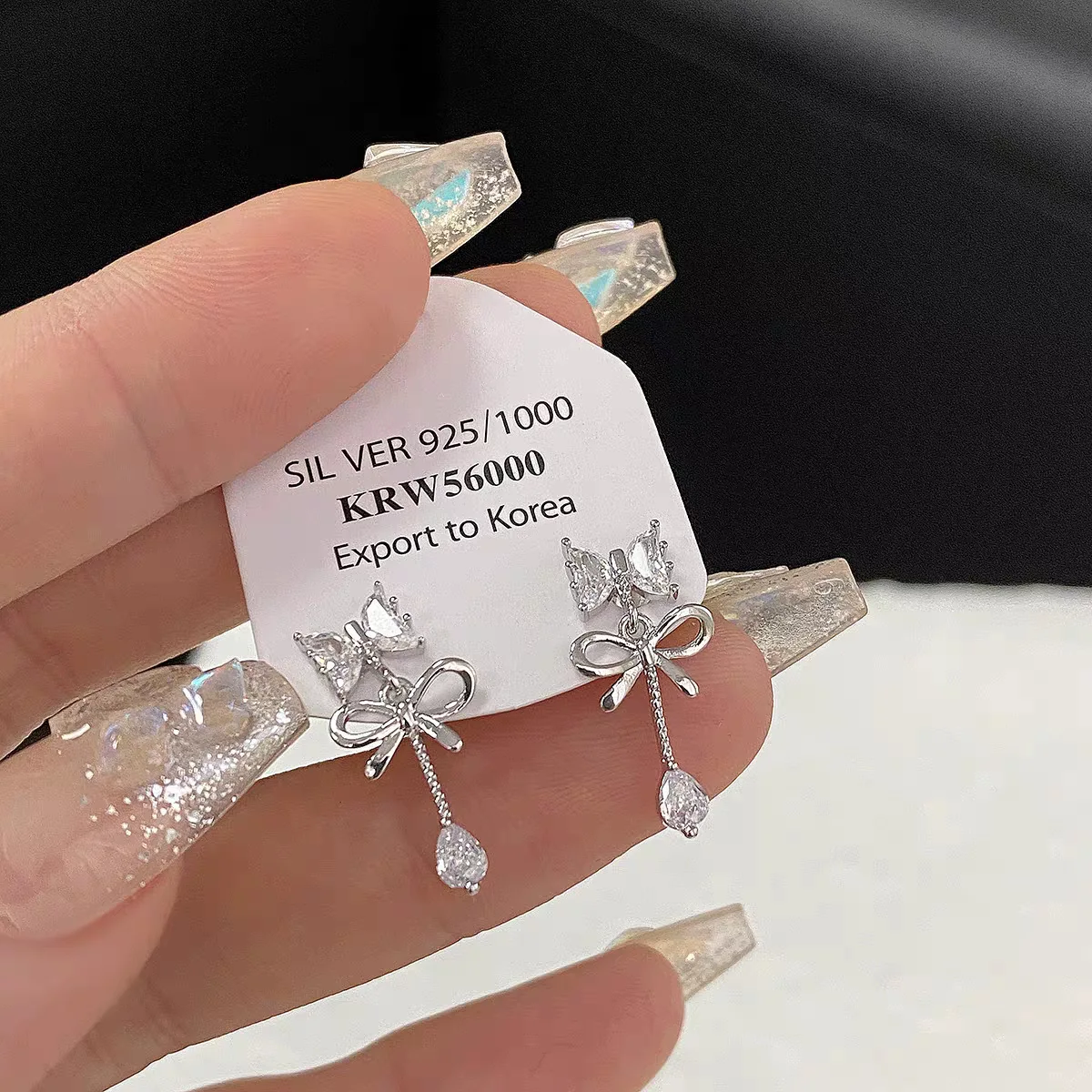 DAIIIBABYYY - New Bow Earrings Rhinestones Girls Delicate Compact Fashionable Versatile Suitable Daily Dating Light Luxury Personalized