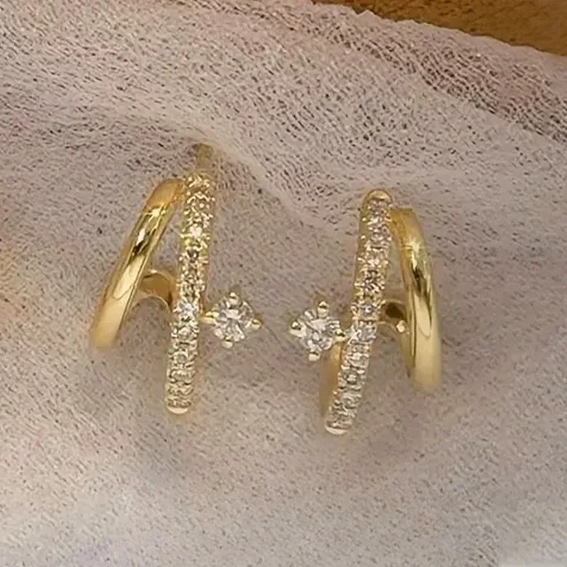 DAIIIBABYYY - New Double Asymmetric Earrings Set with Shiny Cubic Zirconia Stud Earrings Women's Fashion Elegant Jewellery Accessories