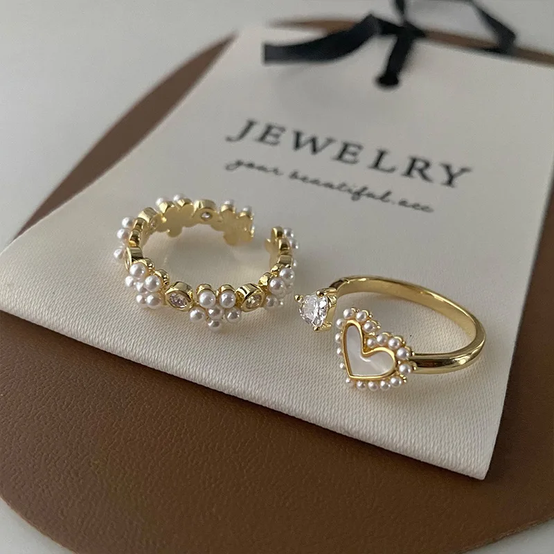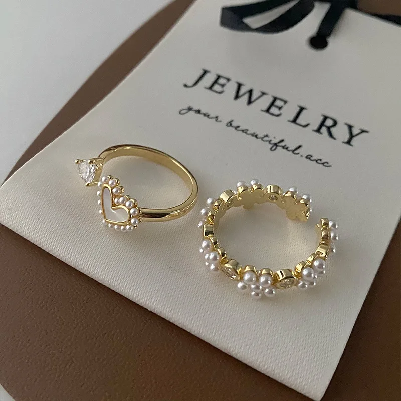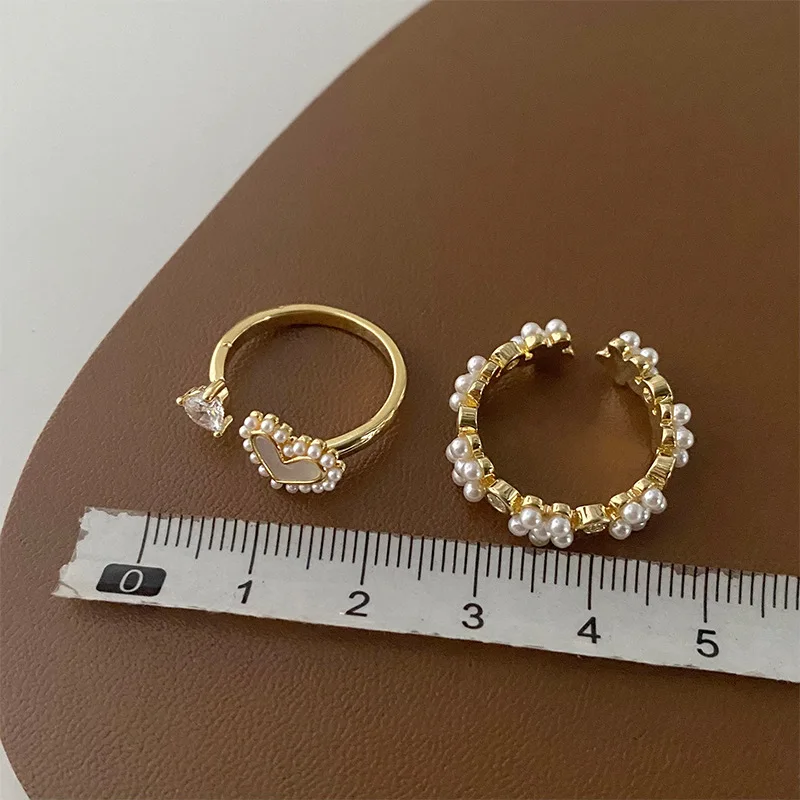 DAIIIBABYYY - New Korean Retro Simple Elegant Shell Pearl Love Flower Opening Rings For Women Fashion Sweet Jewelry Accessories