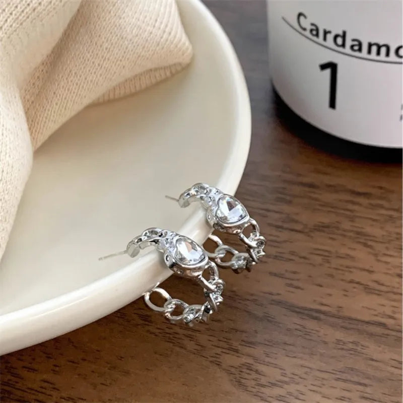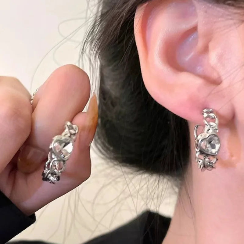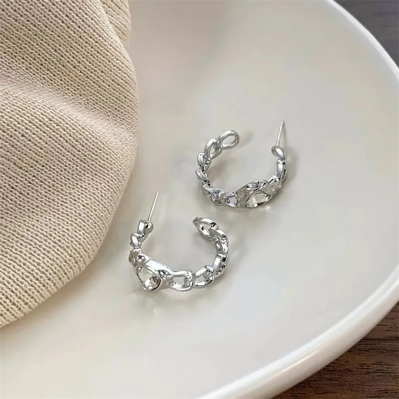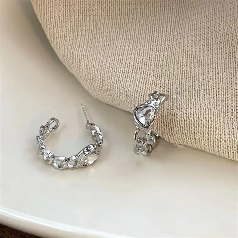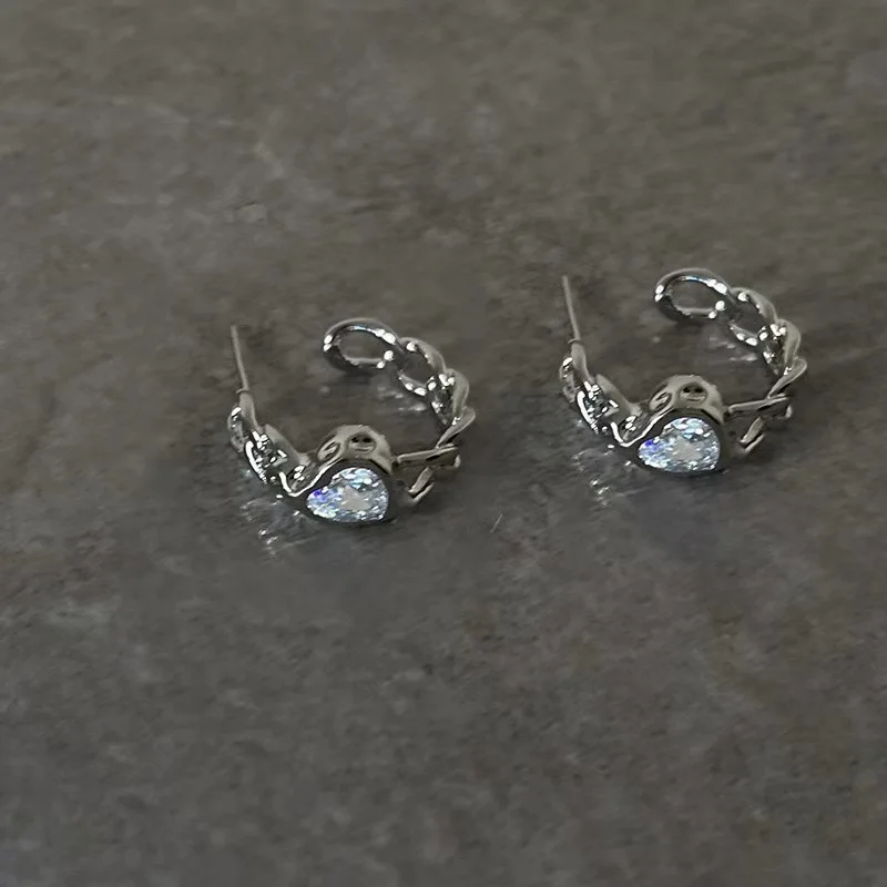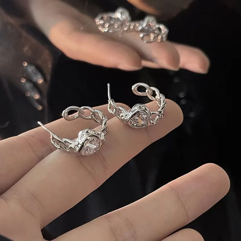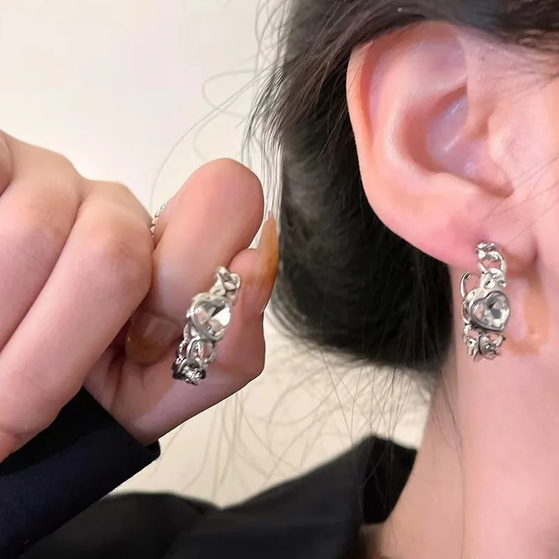 DAIIIBABYYY - New Light Luxury Earrings Female Heart Chain Design Unique Temperament Earrings Niche High-End Feeling Sweet Romantic Banquet