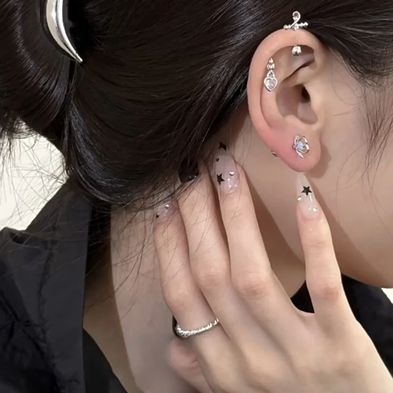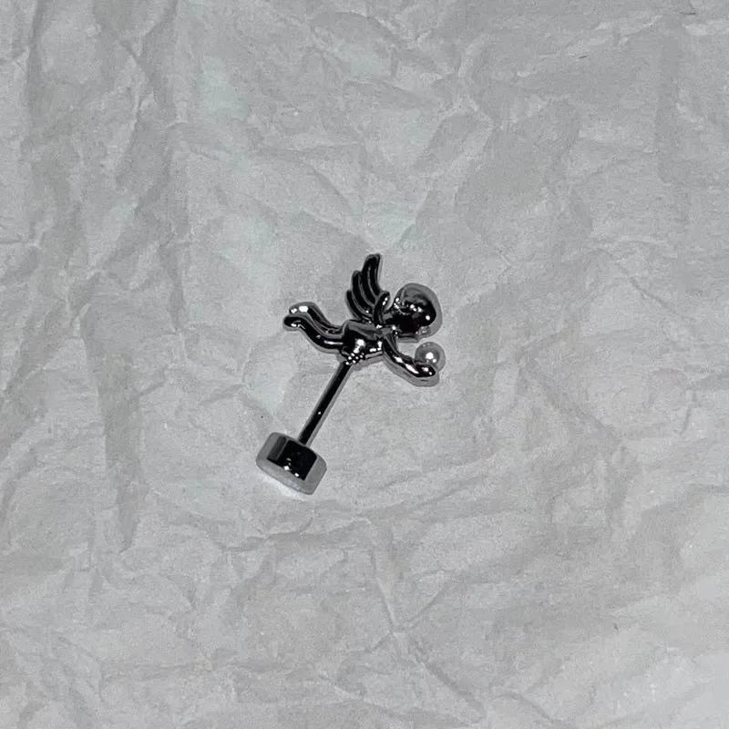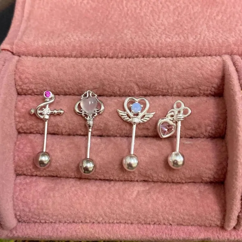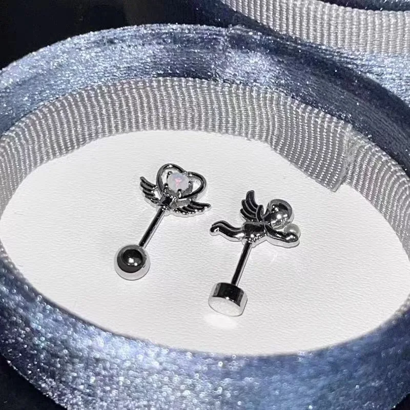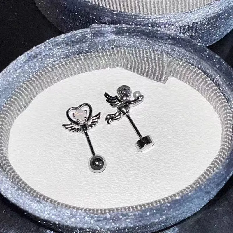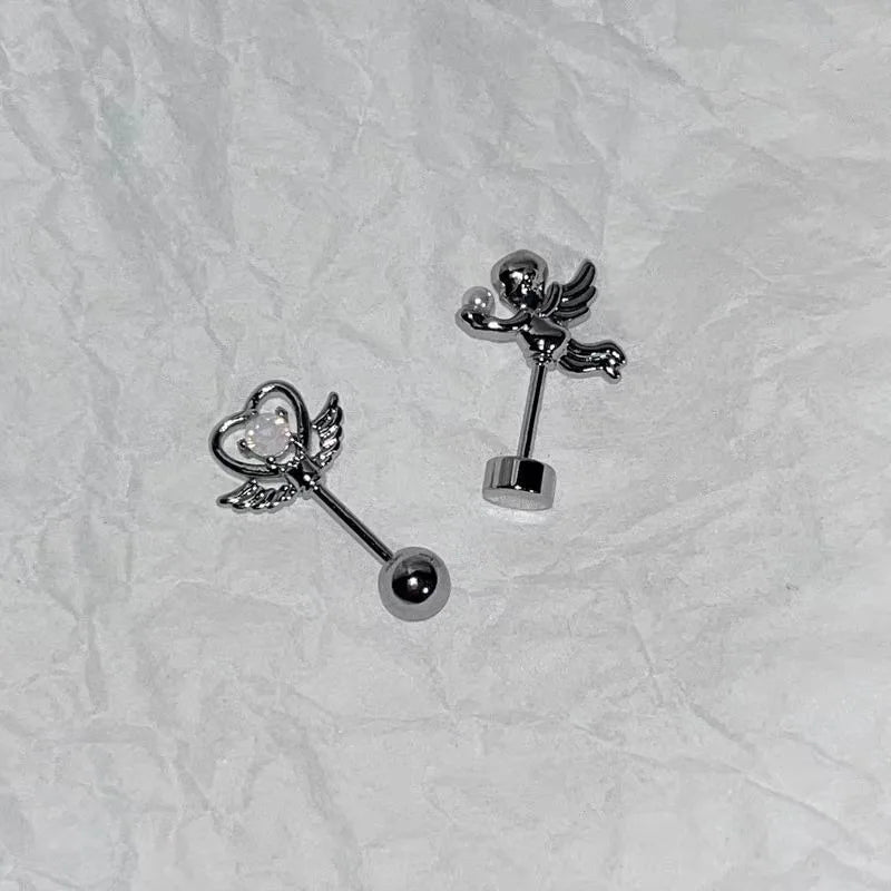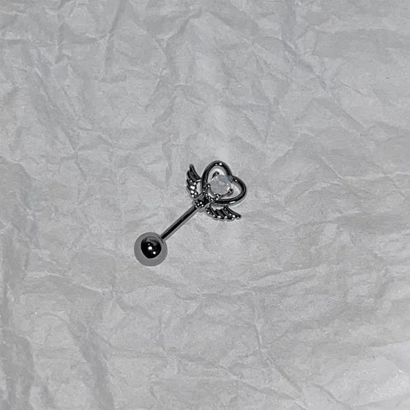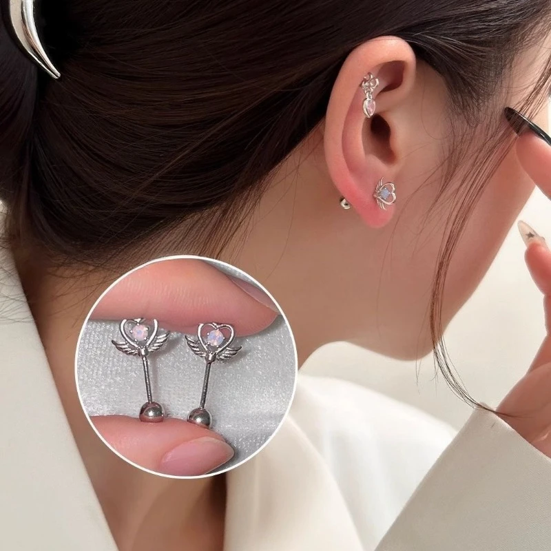 DAIIIBABYYY - One Piece Design Heart-shaped Love Wings Faux Fairy Wand Shape Earrings Women's New Trend Party Accessories Holiday Jewelry Gift
