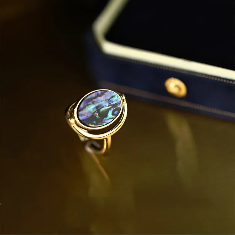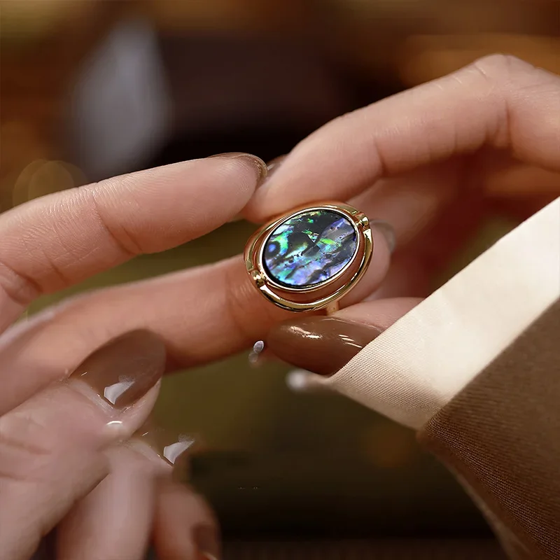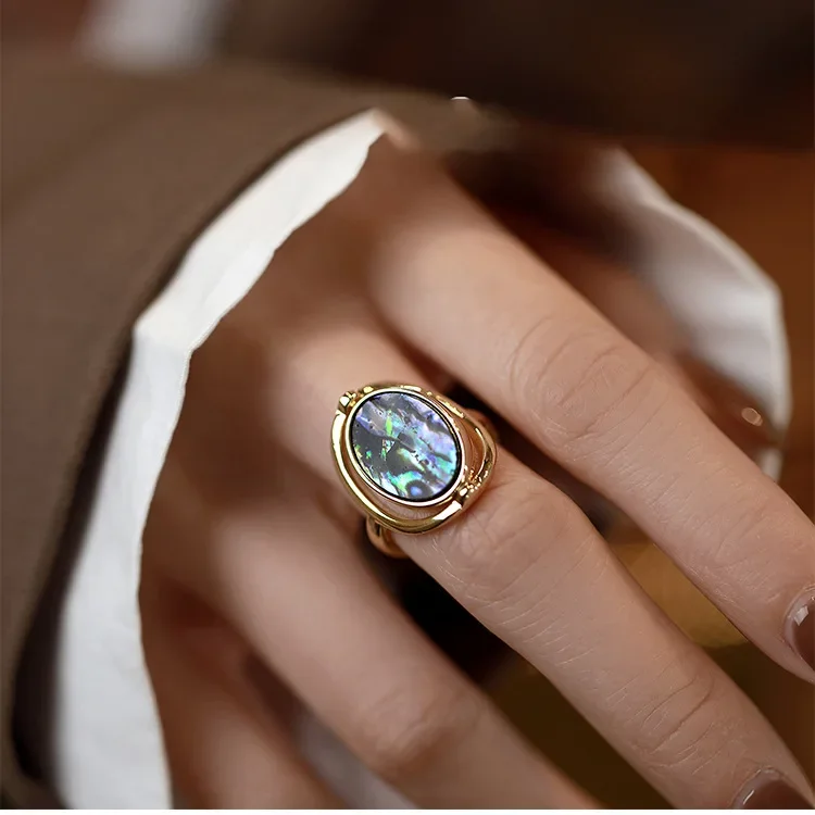 Daiiibabyyy Oval Shell Open Rings for Women Retro Fashion Exquisite Temperament Index Finger Ring Light Luxury High-end Hand Jewelry Gifts