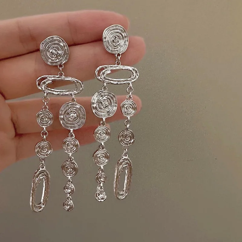 DAIIIBABYYY - Personalized round micro-set geometric tassel stud earrings