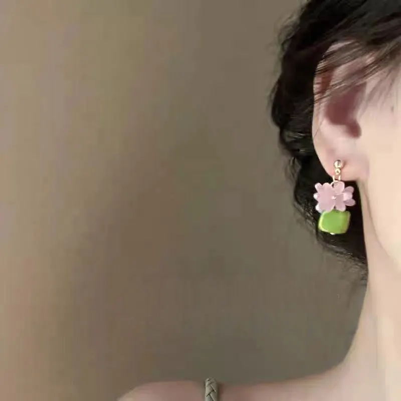 DAIIIBABYYY - Pink Tulip Earrings Cute Flower Earrings Botanical Cute Jewelry