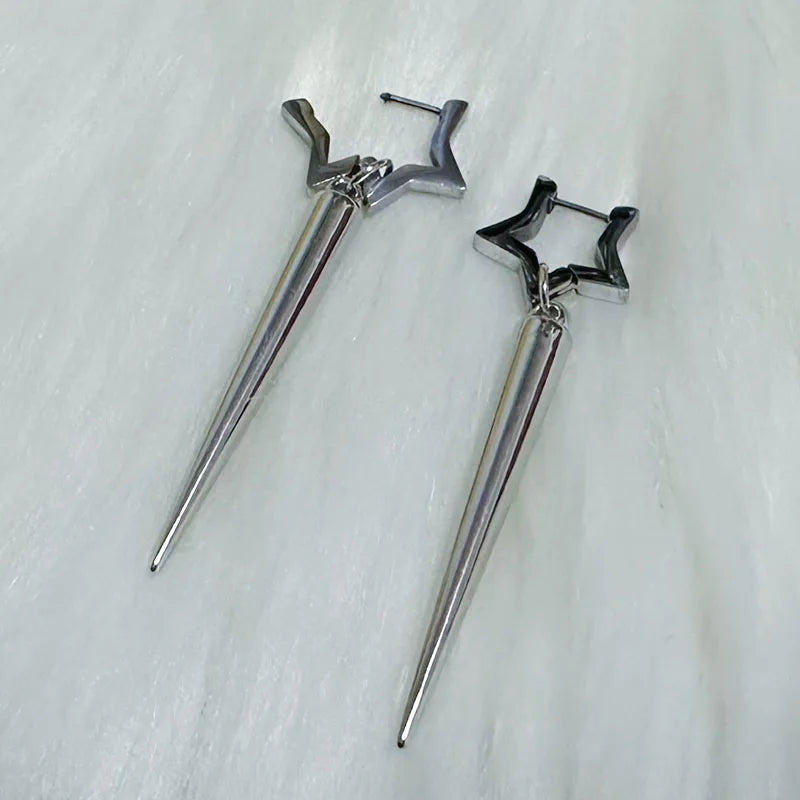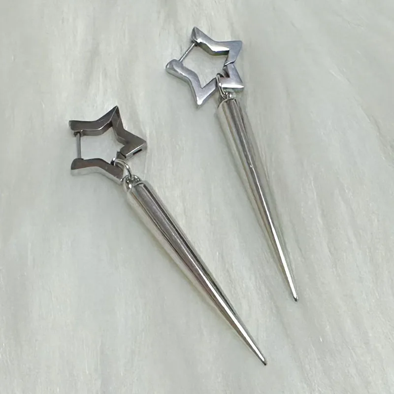 Daiiibabyyy Punk Charms Rivet Star Earrings Korean Fashion Aesthetic Drop Earrings Women Geometric Goth Jewelry Grunge Earrings Accessories