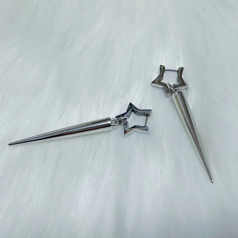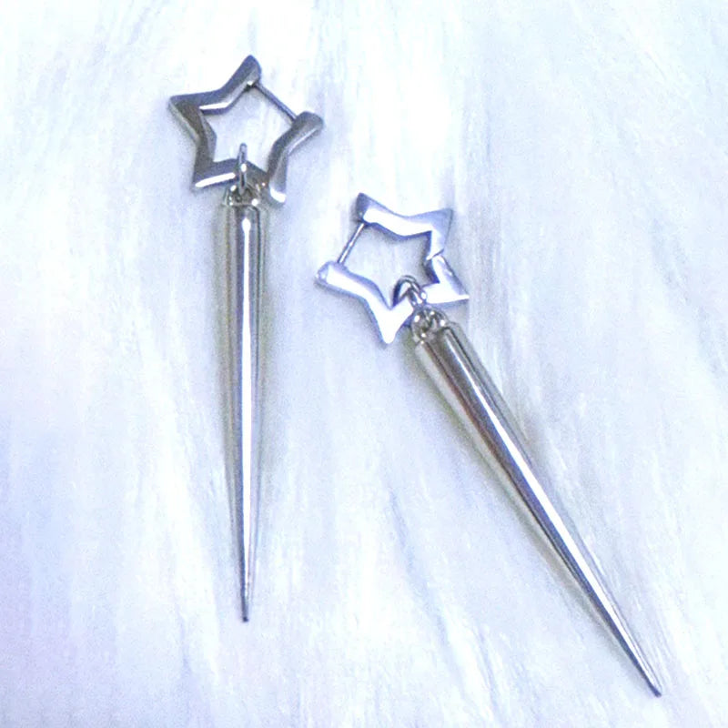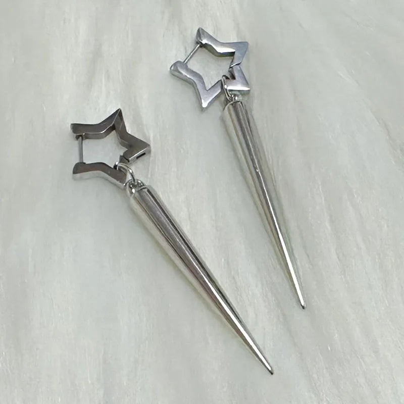 Daiiibabyyy  Punk Charms Rivet Star Earrings Korean Fashion Aesthetic Drop Earrings Women Geometric Goth Jewelry Grunge Earrings Accessories