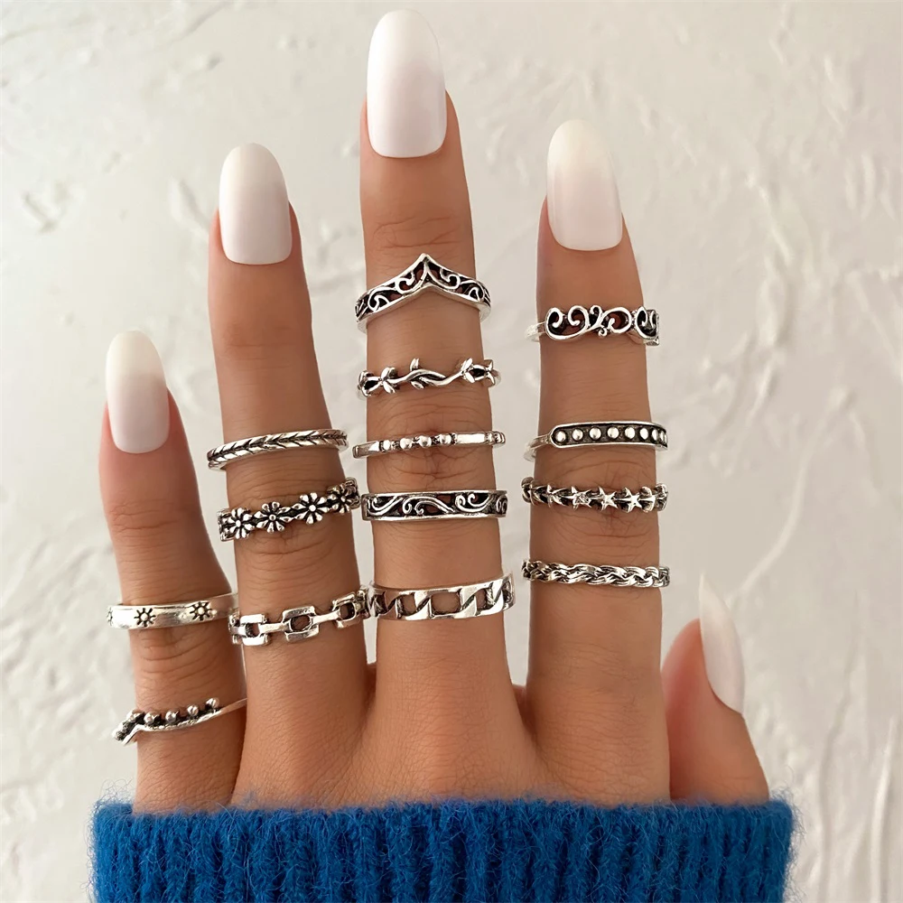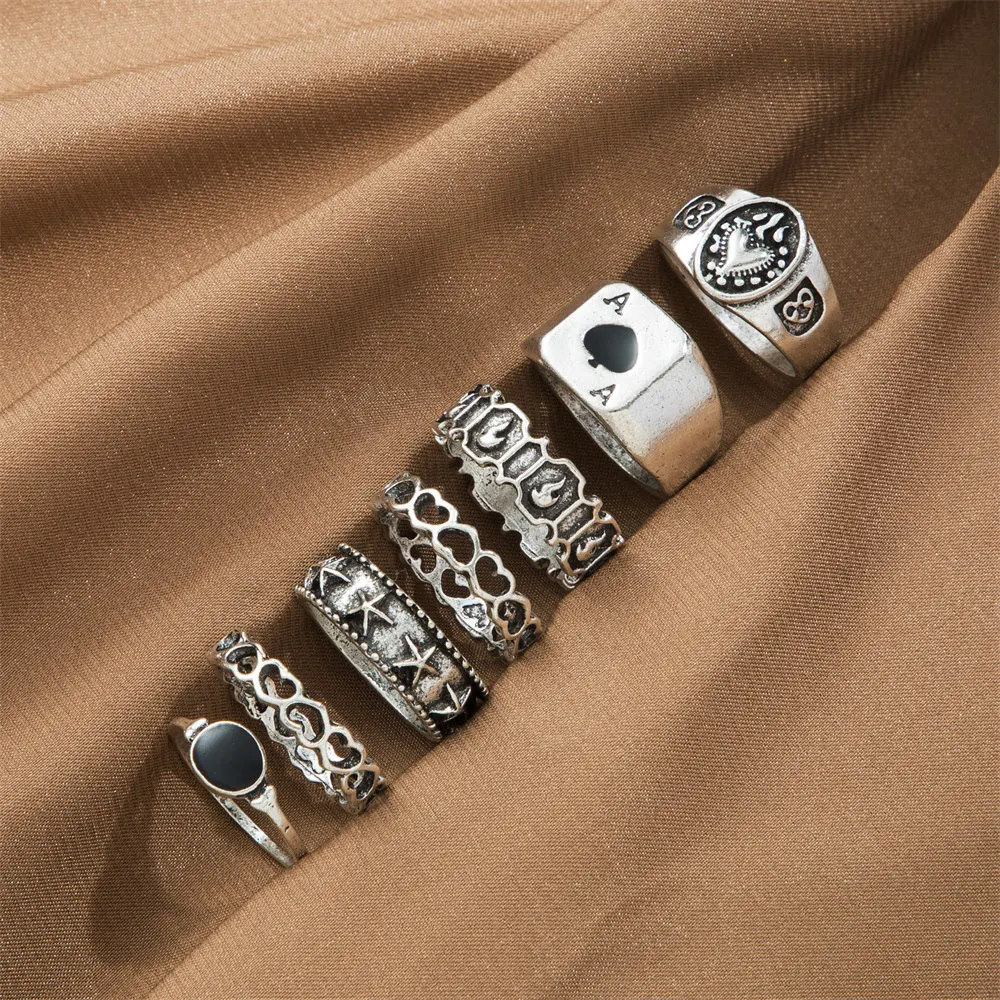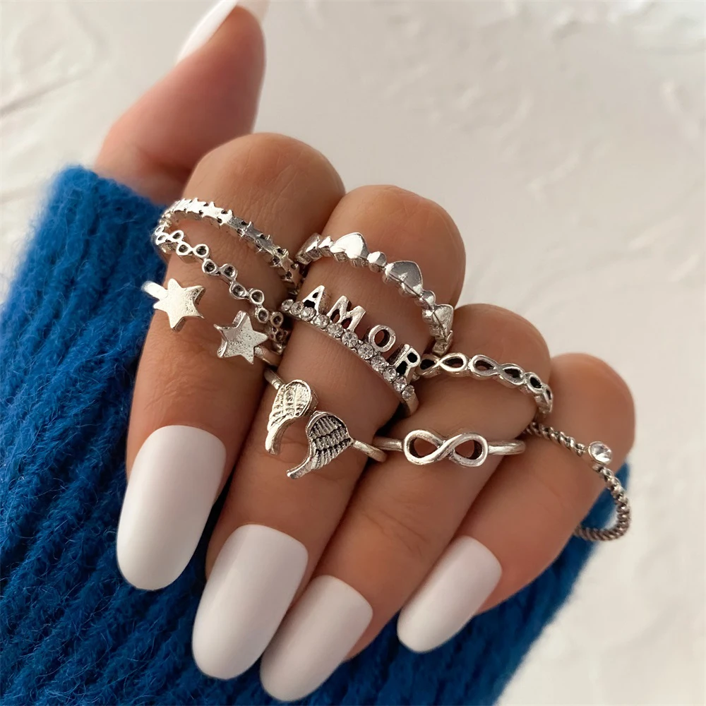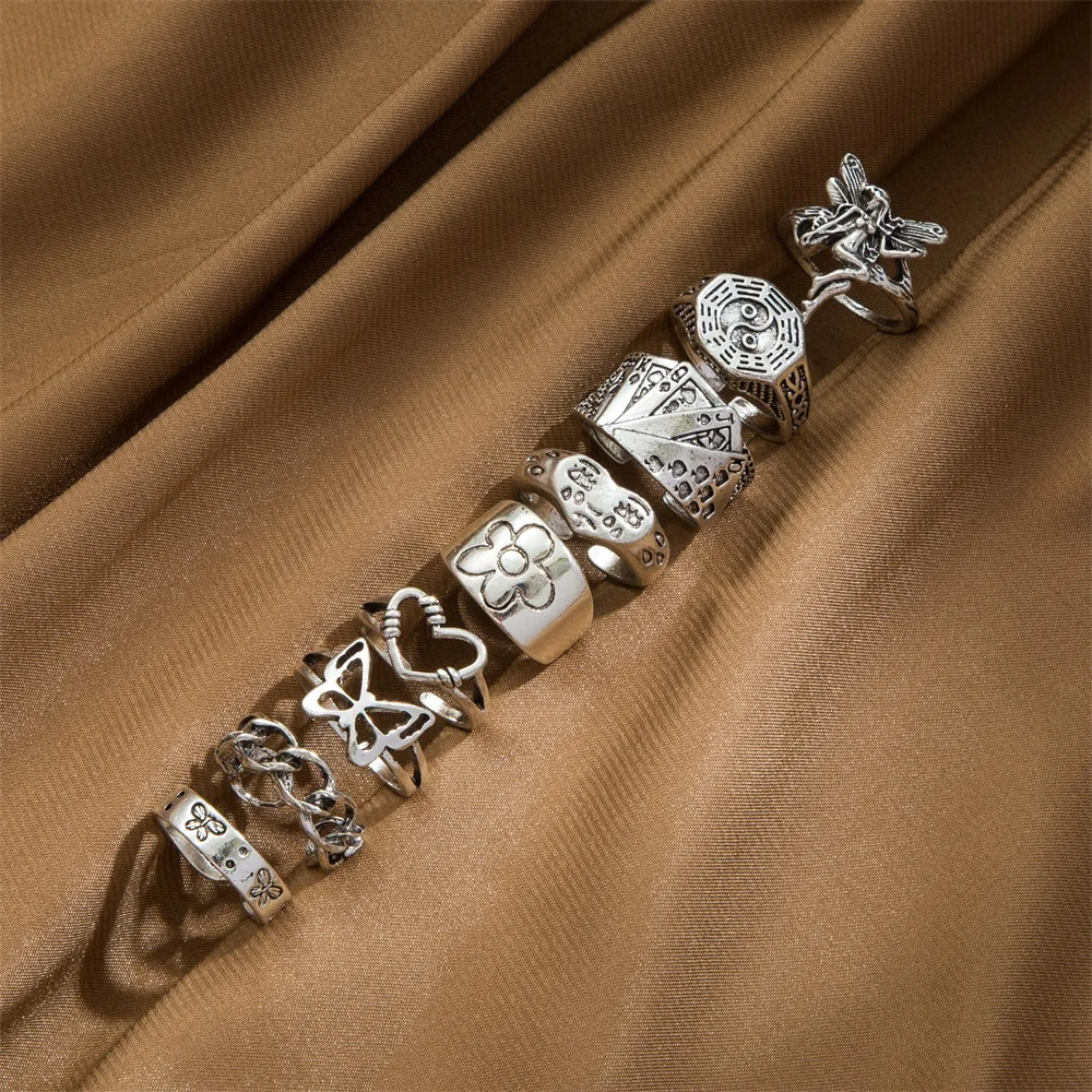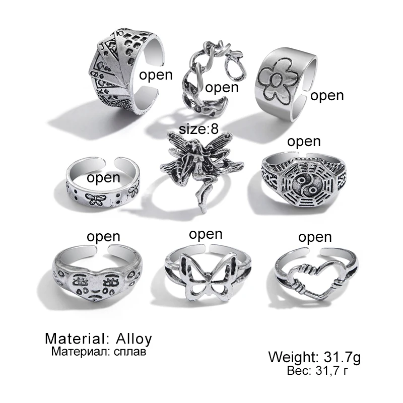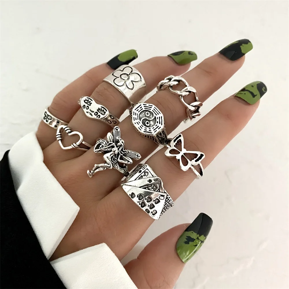 DAIIIBABYYY  -  Punk Gothic Angel Fairy Rings Set for Women Men Retro Silver Color Plated Butterfly Heart Charm Finger Ring Jewelry