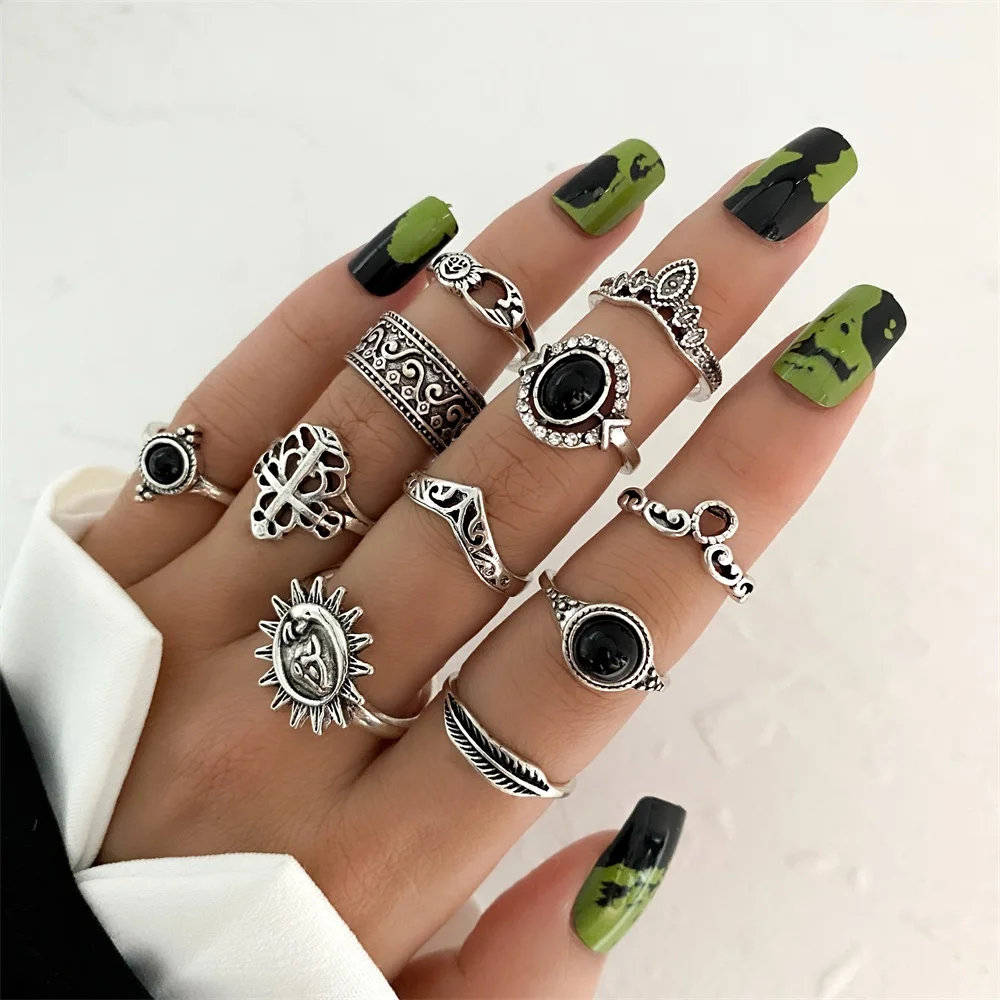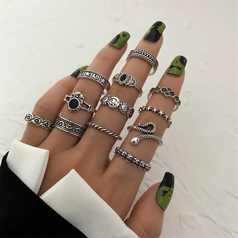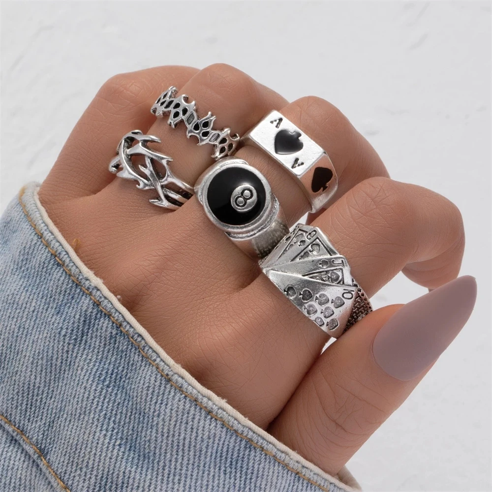 DAIIIBABYYY - Punk Gothic Angel Fairy Rings Set for Women Men Retro Silver Color Plated Butterfly Heart Charm Finger Ring Jewelry