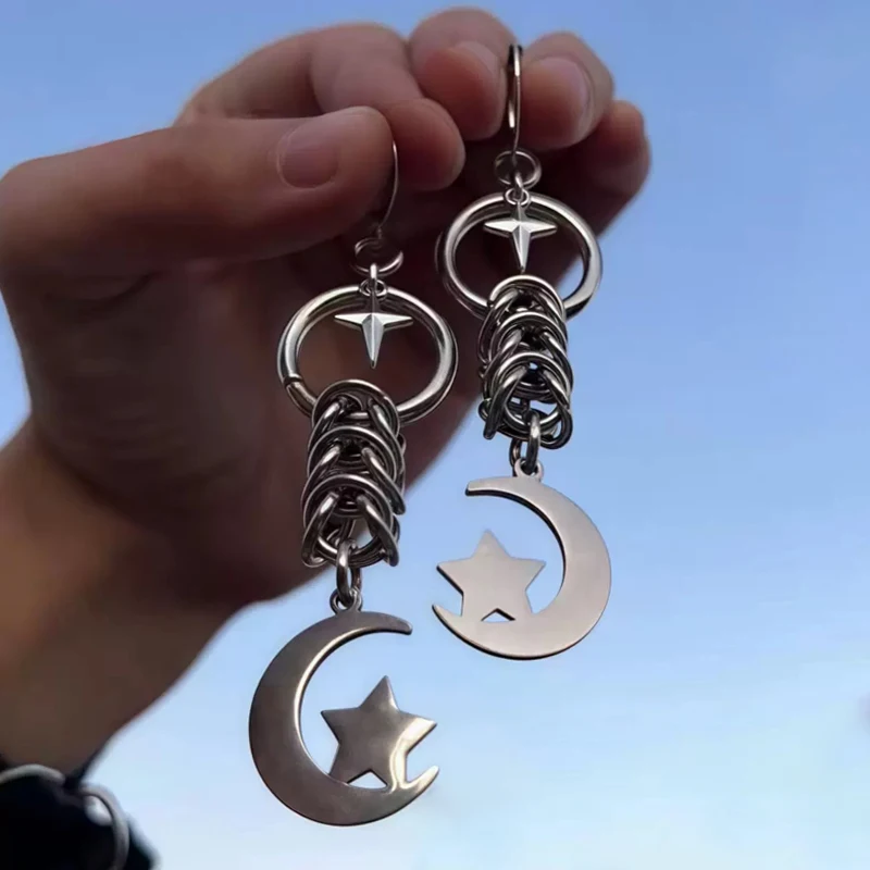 Daiiibabyyy Punk Jewelry Moon Star Earrings for Women Korean Fashion Chain Cross Drop Earrings Accessories Gothic Jewelry Earrings