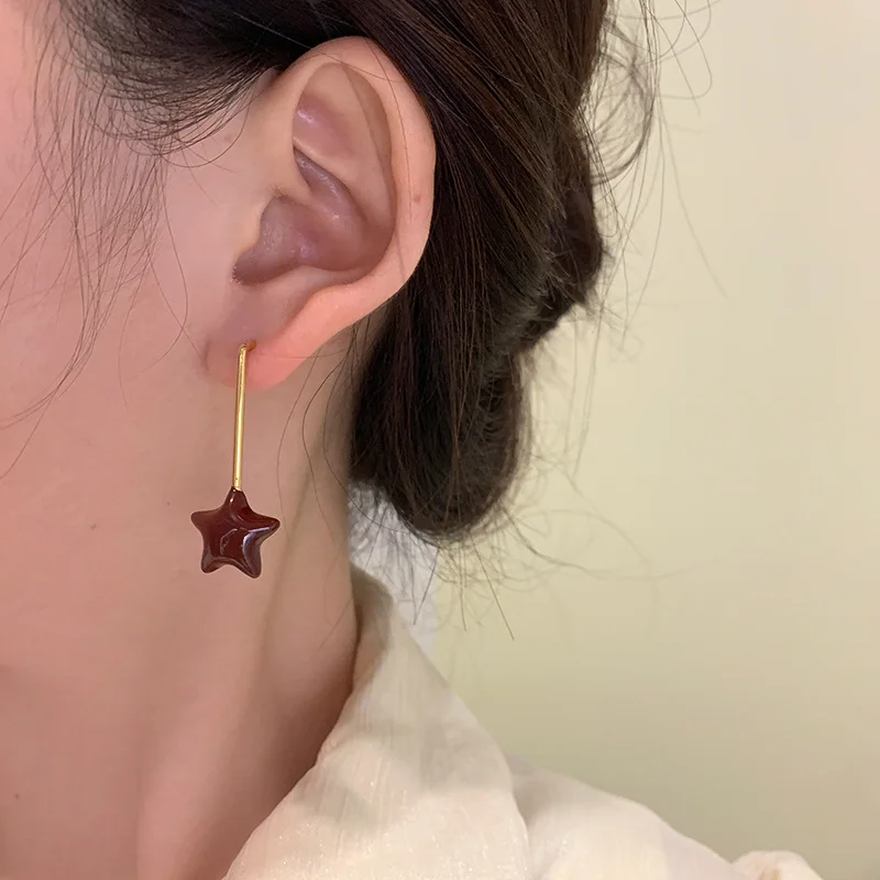 DAIIIBABYYY - Red oil drop earrings niche retro high-end temperament long burgundy earrings