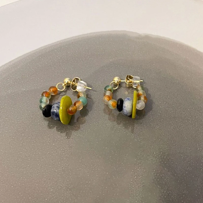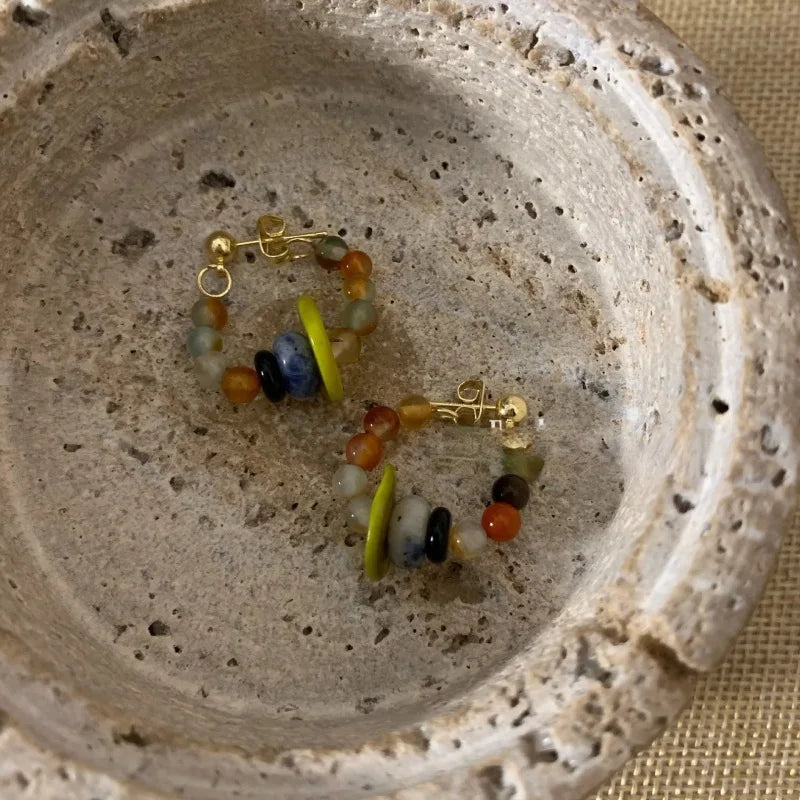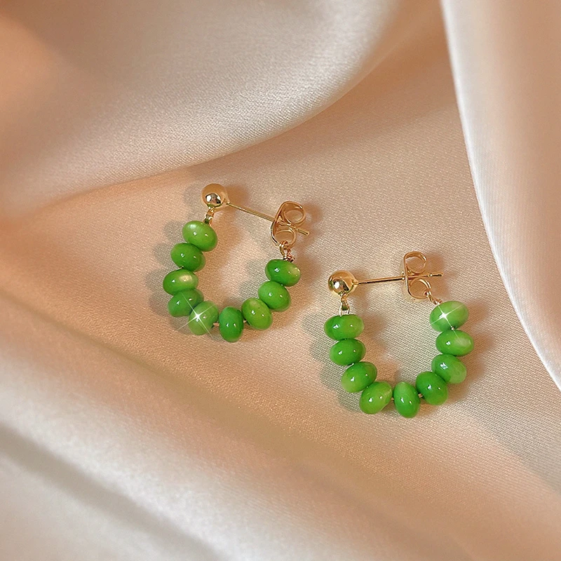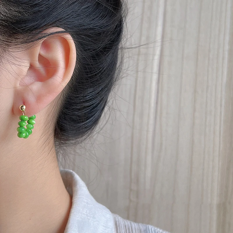 DAIIIBABYYY - Retro Colorful Green Bead Earrings Ethnic Style Safety Buckle Design Light Luxury Artistic Popular Earrings Women's Jewelry