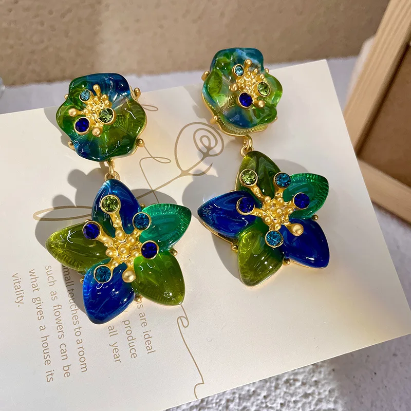DAIIIBABYYY - Retro palace style gradient crystal glass starfish personality exaggerated flower earrings