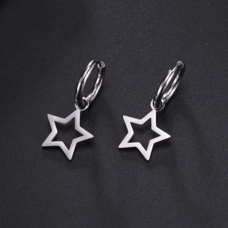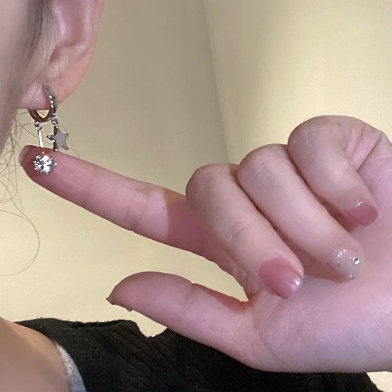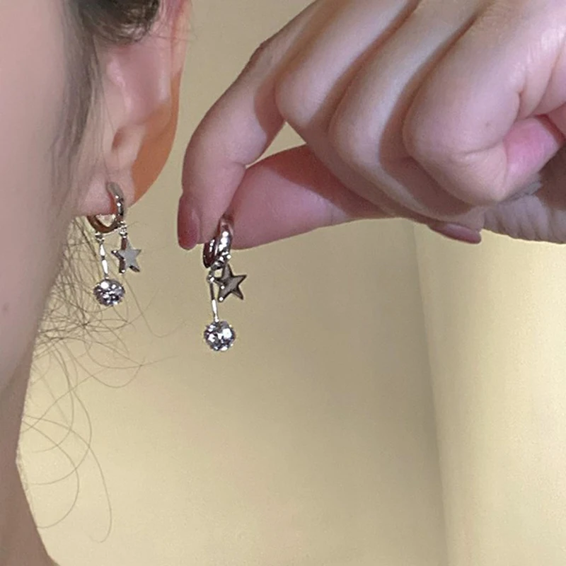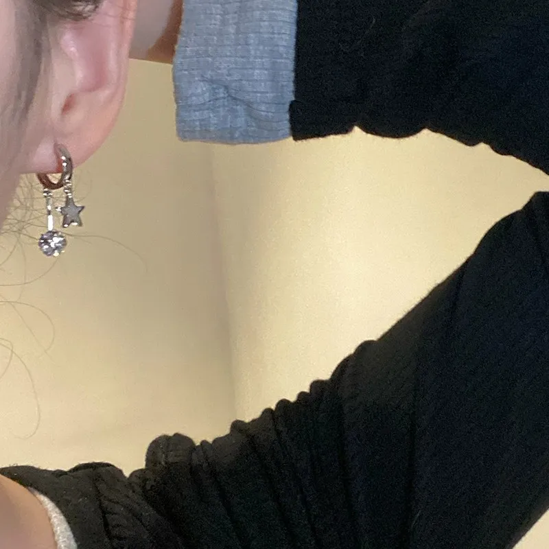Daiiibabyyy Silver Color Ball Star Pendant Ear Loops Water Rhinestone Exquisite Creative Design Fashion Earrings Women's Daily Jewelry
