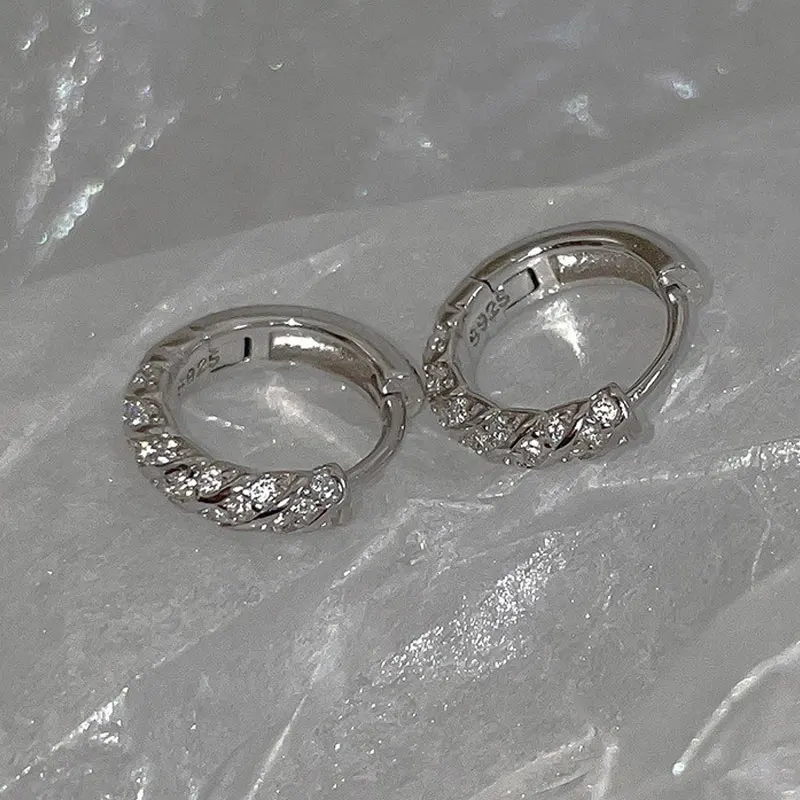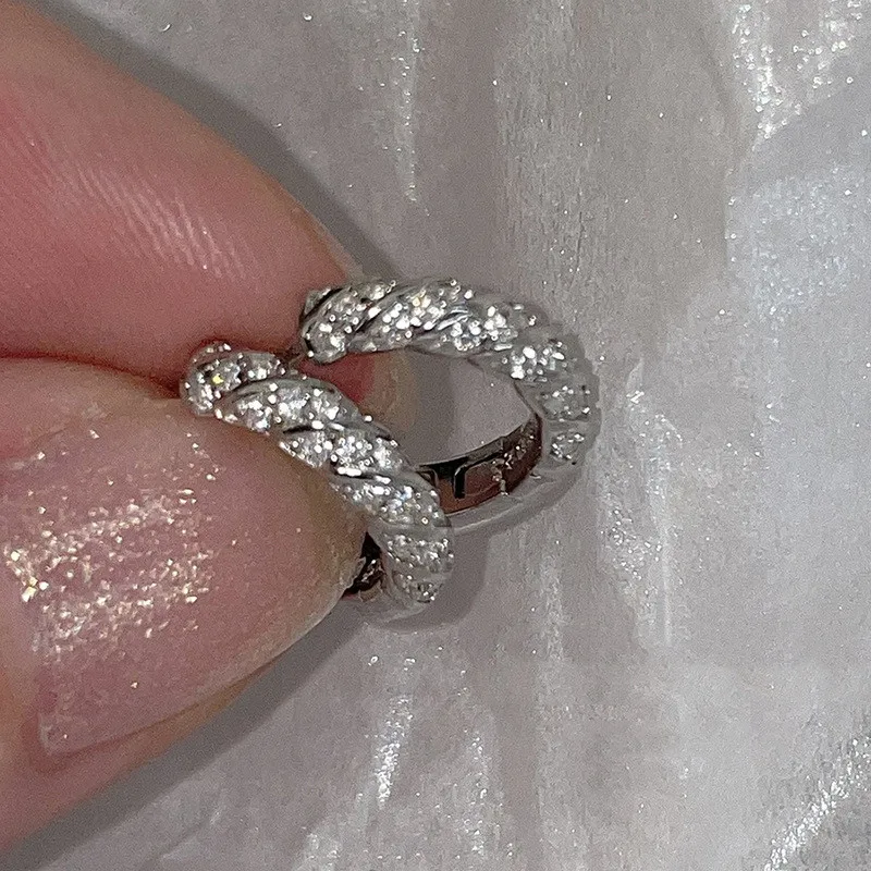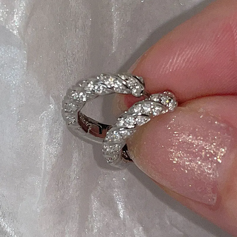 Daiiibabyyy Silver Color Needle New Ladies Fashion High Quality Jewelry Double Row Crystal Zircon Round Silver Color Plated Hoop Earrings