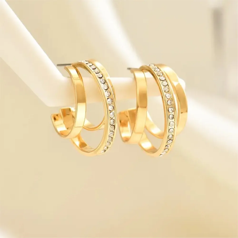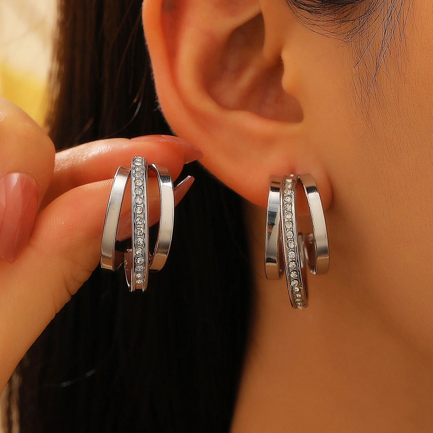 Daiiibabyyy Simple Fashion C Shape Zircon Earrings for Women Three-Layer Circle Earring Everyday&Formal Party Jewelry Gifts