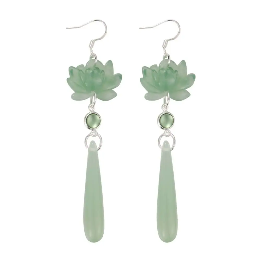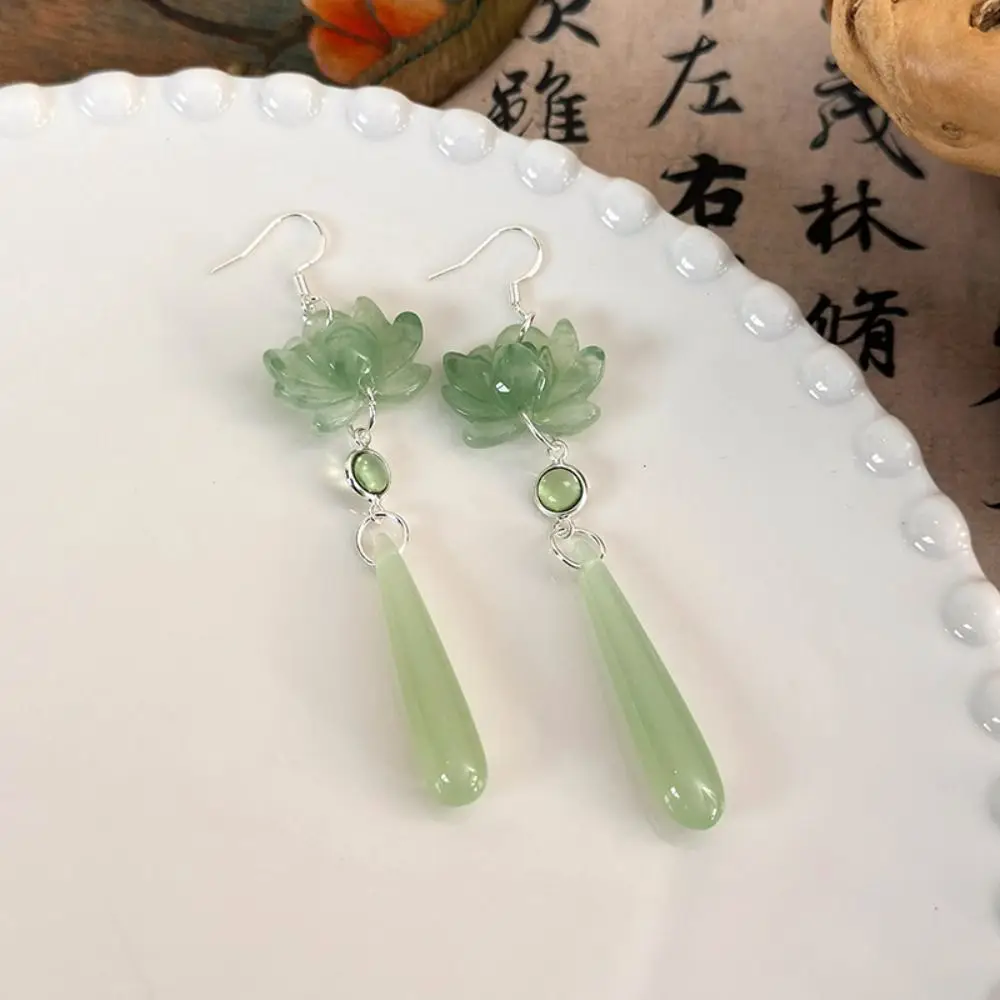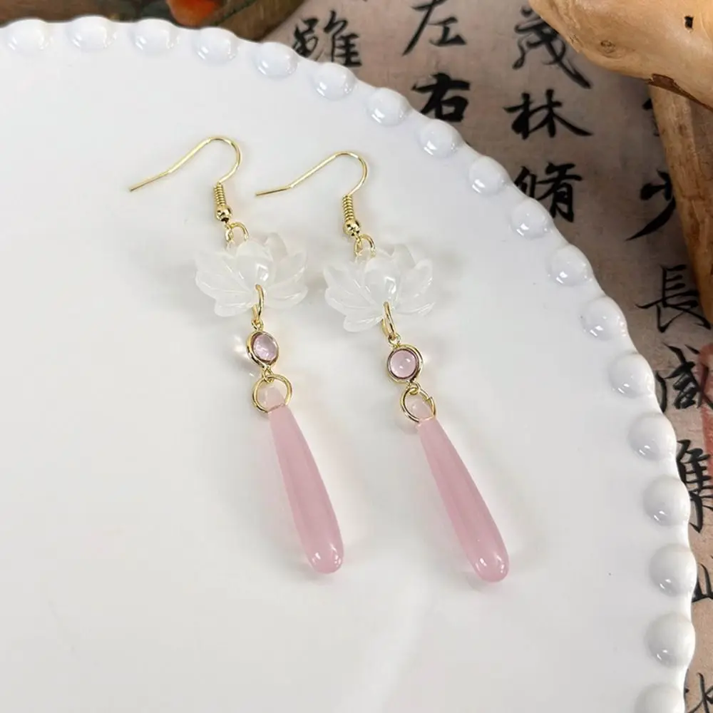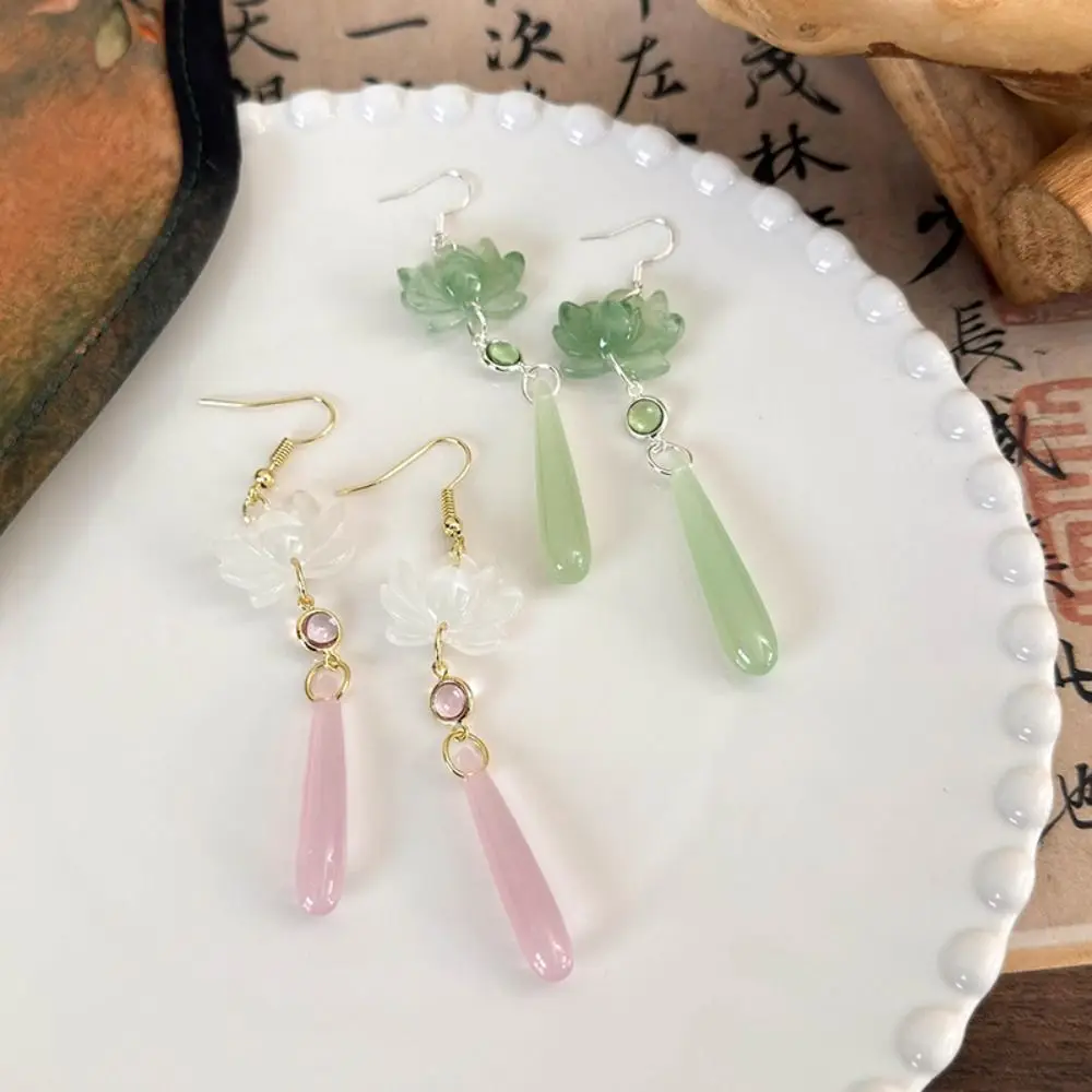 DAIIIBABYYY - Simple Lotus Pendant Ear Hooks Elegant Retro Chinese Classic Earrings Chinese Ancient Style Handmade Lotus Water Drop Earrings