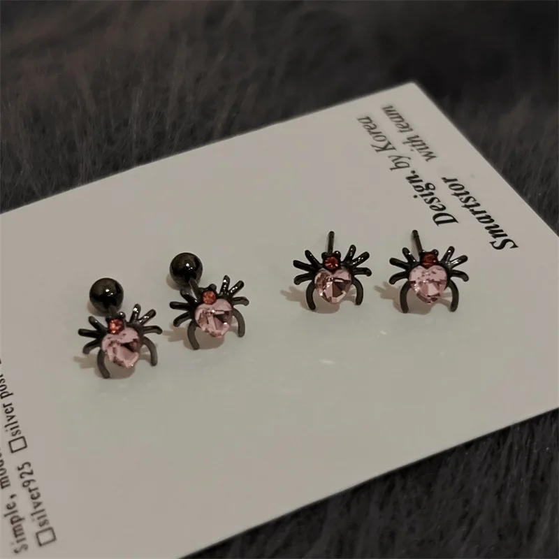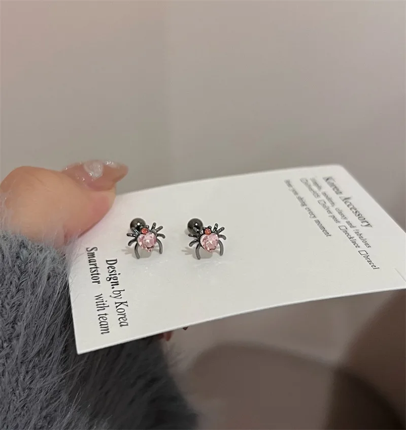 DAIIIBABYYY - Sweet Cool Creative Spider Shape Heart Rhinestone Stud Earrings Women Punk Y2K Spiral Buckle Earring Jewelry Party Gift