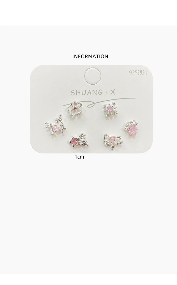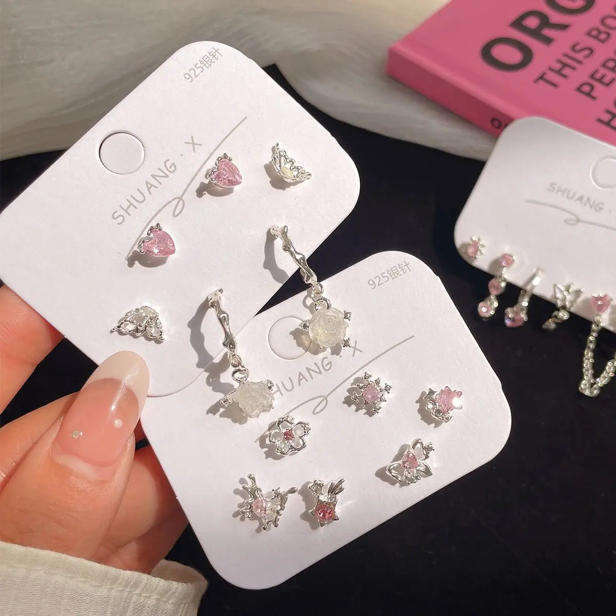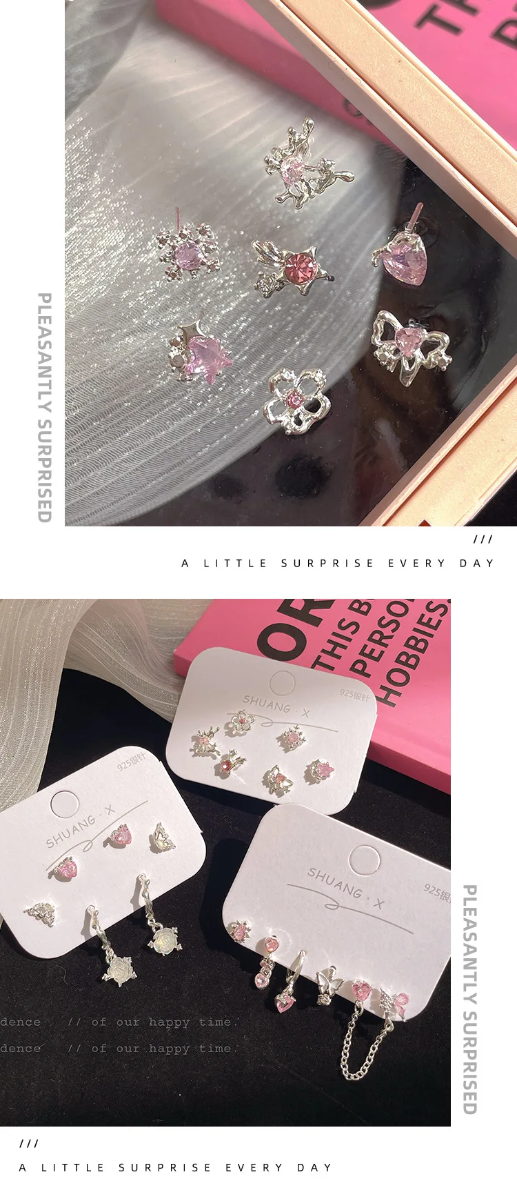 DAIIIBABYYY  -  Sweet Cool INS Pink Color Rhinestone Crystal Geometry Stud Earrings Set Women Korean Fashion Kpop Tassel Earring Jewelry