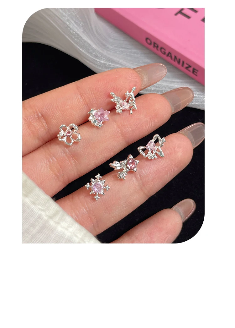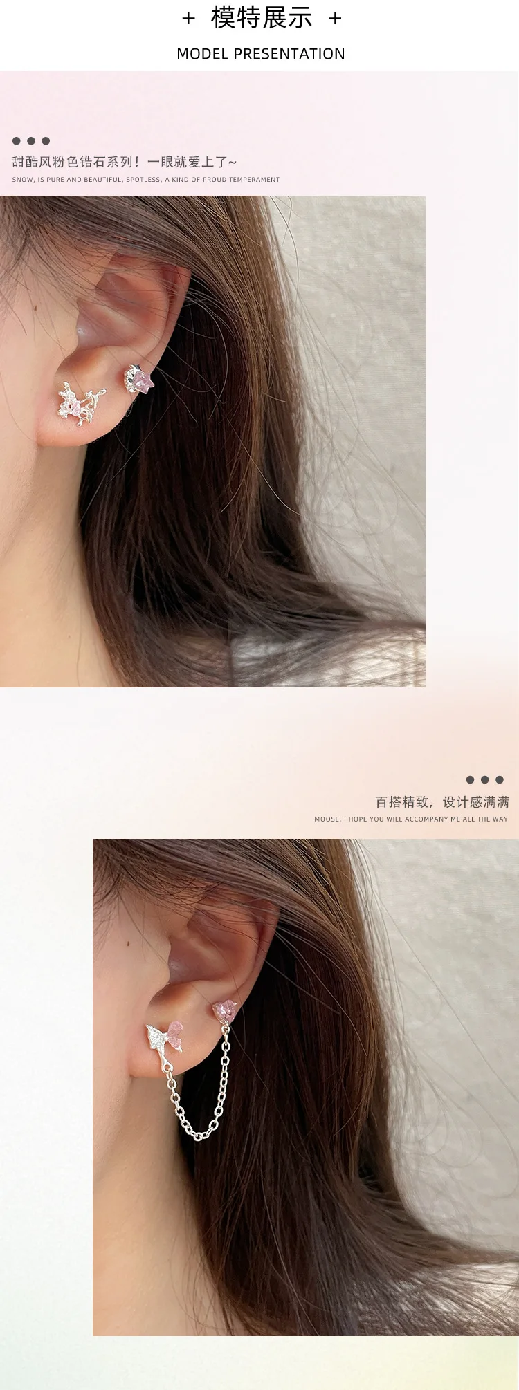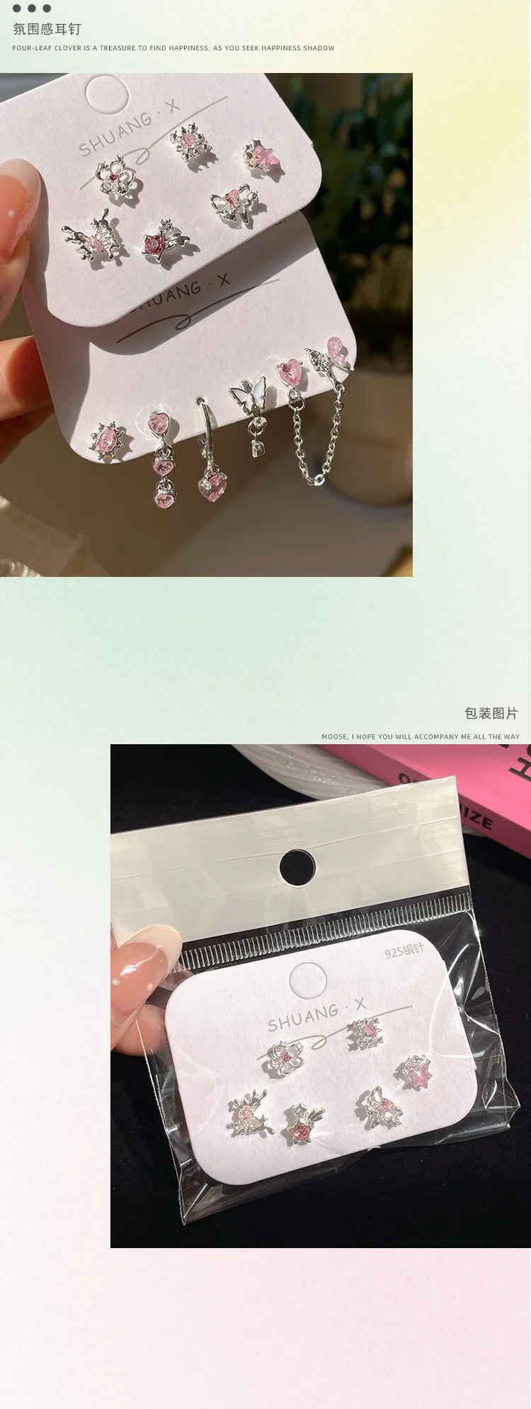 DAIIIBABYYY  -  Sweet Cool INS Pink Color Rhinestone Crystal Geometry Stud Earrings Set Women Korean Fashion Kpop Tassel Earring Jewelry