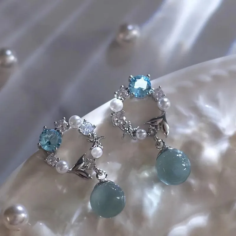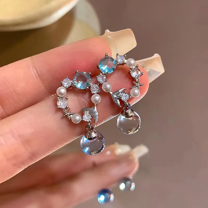 DAIIIBABYYY - Sweet Wind Round Earrings Ladies Tail Earrings Fashionable Commuting Personality Light Luxury Temperament Banquet Jewelry