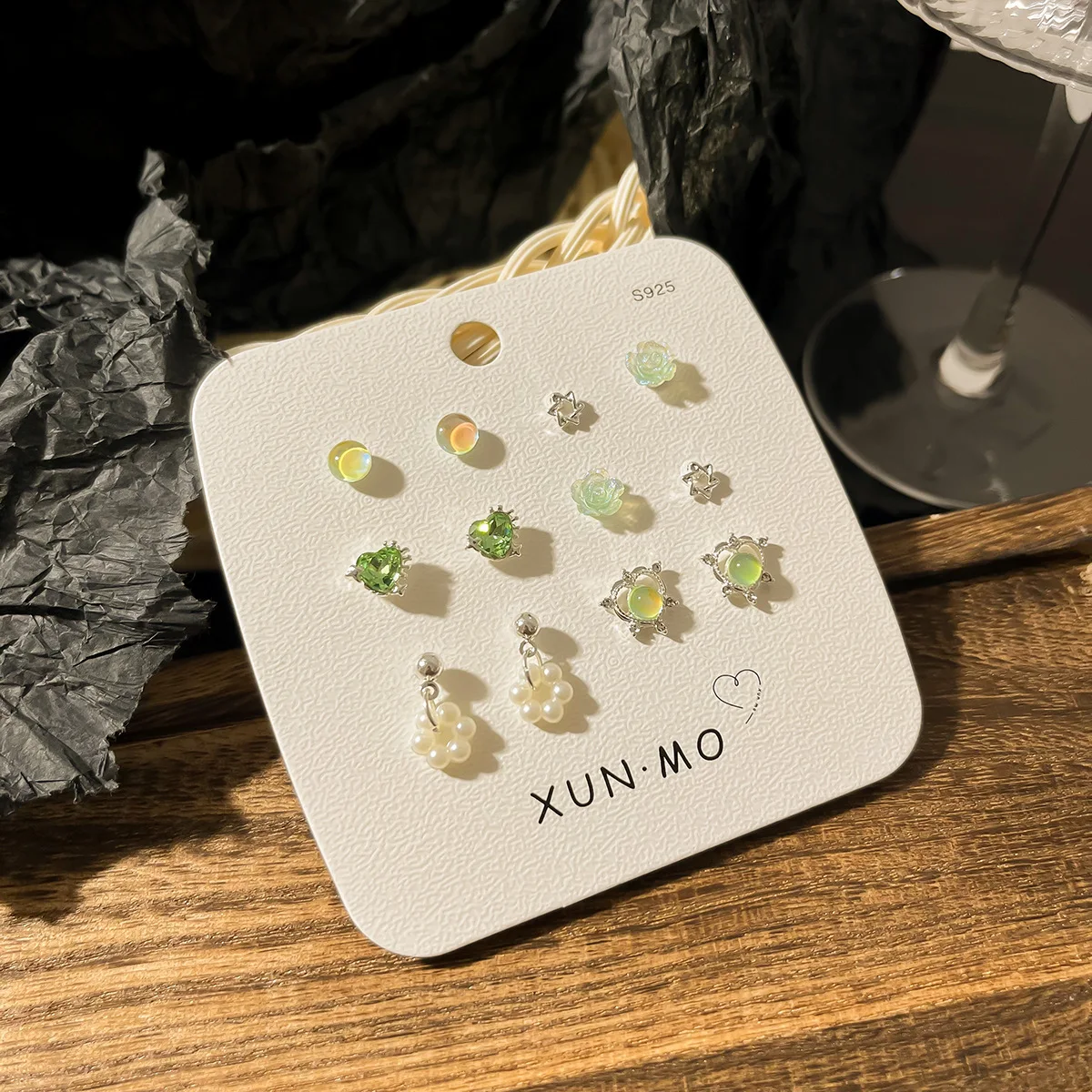 DAIIIBABYYY - Sweet Y2K Blue Aurora Rhinestone Heart Star Moon Stud Earrings Set Women Korean Fashion Butterfly Earring Jewelry Gift