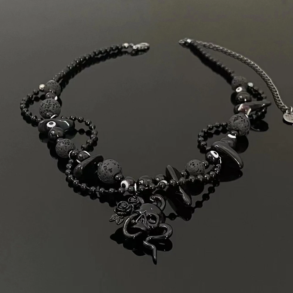 DAIIIBABYYY - Trendy Cool Punk Black Dripping Snake Rose Skull Necklace Women's Fashion Delicate Dark Earrings Choker
