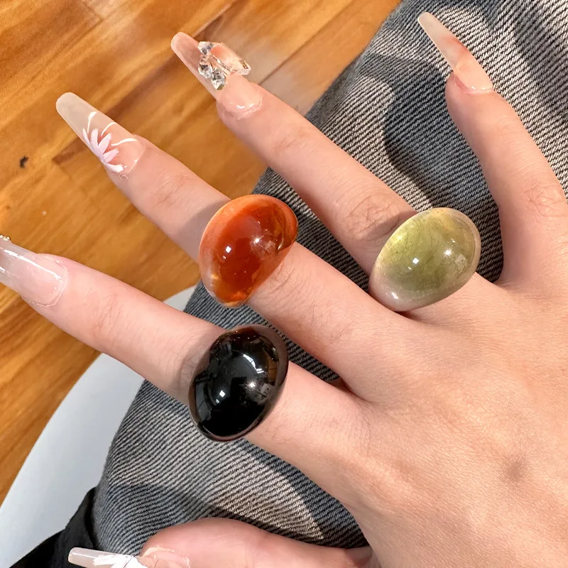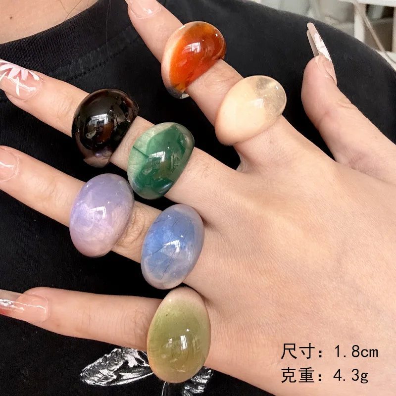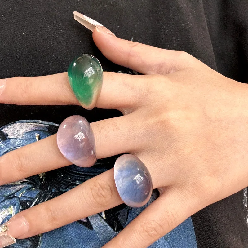 DAIIIBABYYY - Trendy Gradient Colorful Transparent Resin Acrylic Big Ring Geometric Oval Finger Rings For Women Fashion Hand Stackable Jewelry